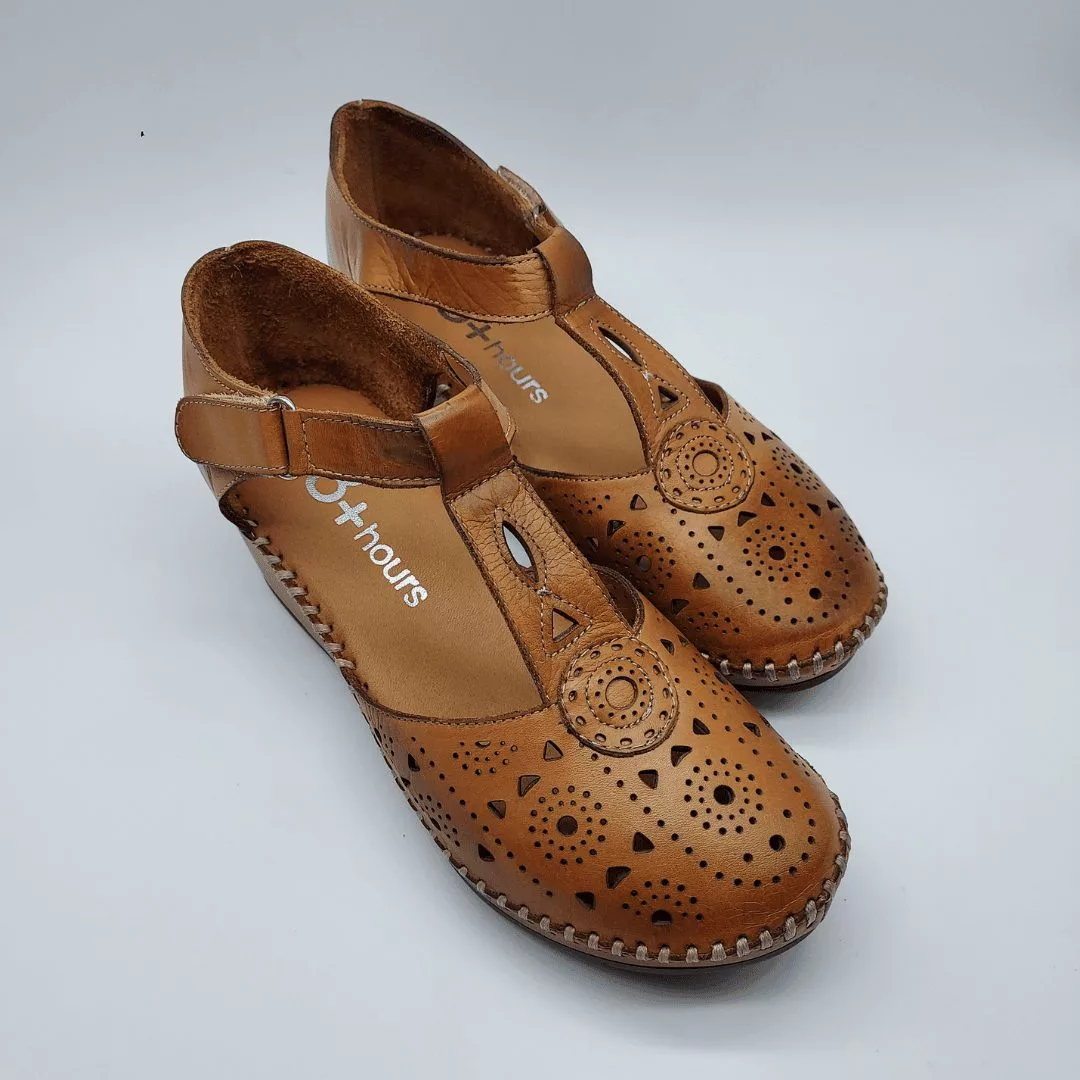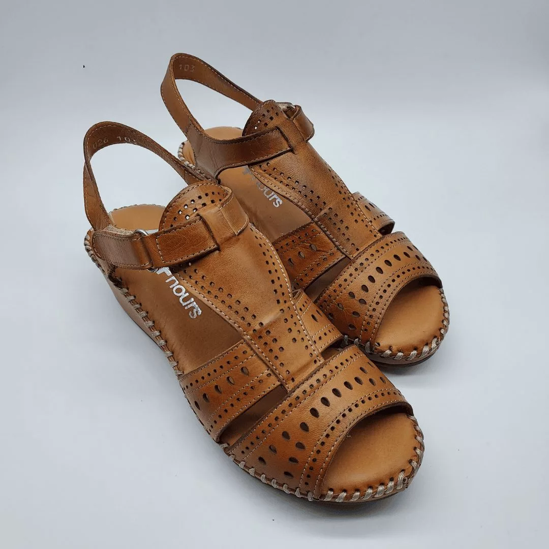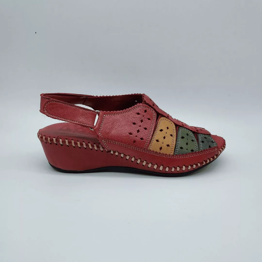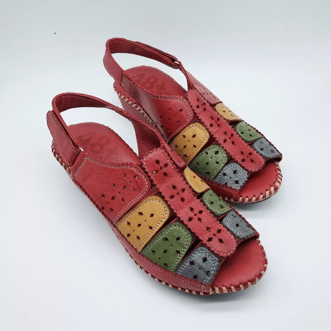 48+Hours Mod. 515407/30, Sandalia en Piel troquelada en forma de girasol acabado color Blanco, cuña en dos colores de 5,5 cm de altura y plataforma de 1 cm, con Plantilla acolchada de piel, cierre mediante Velcro regulable.