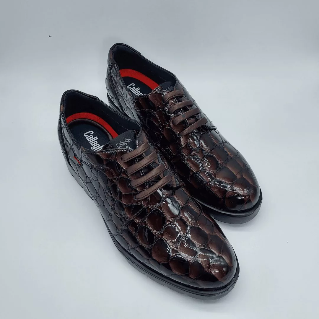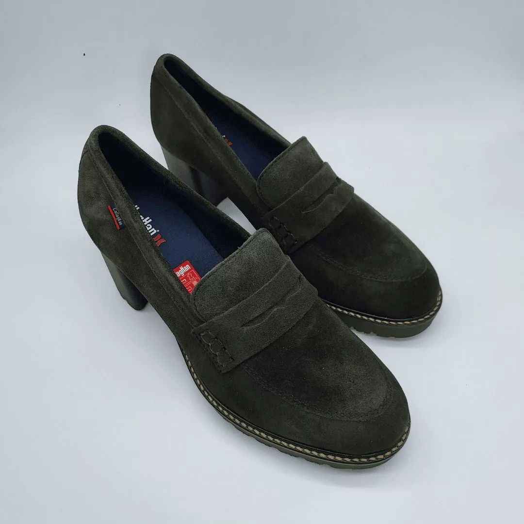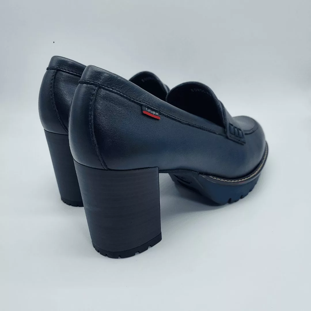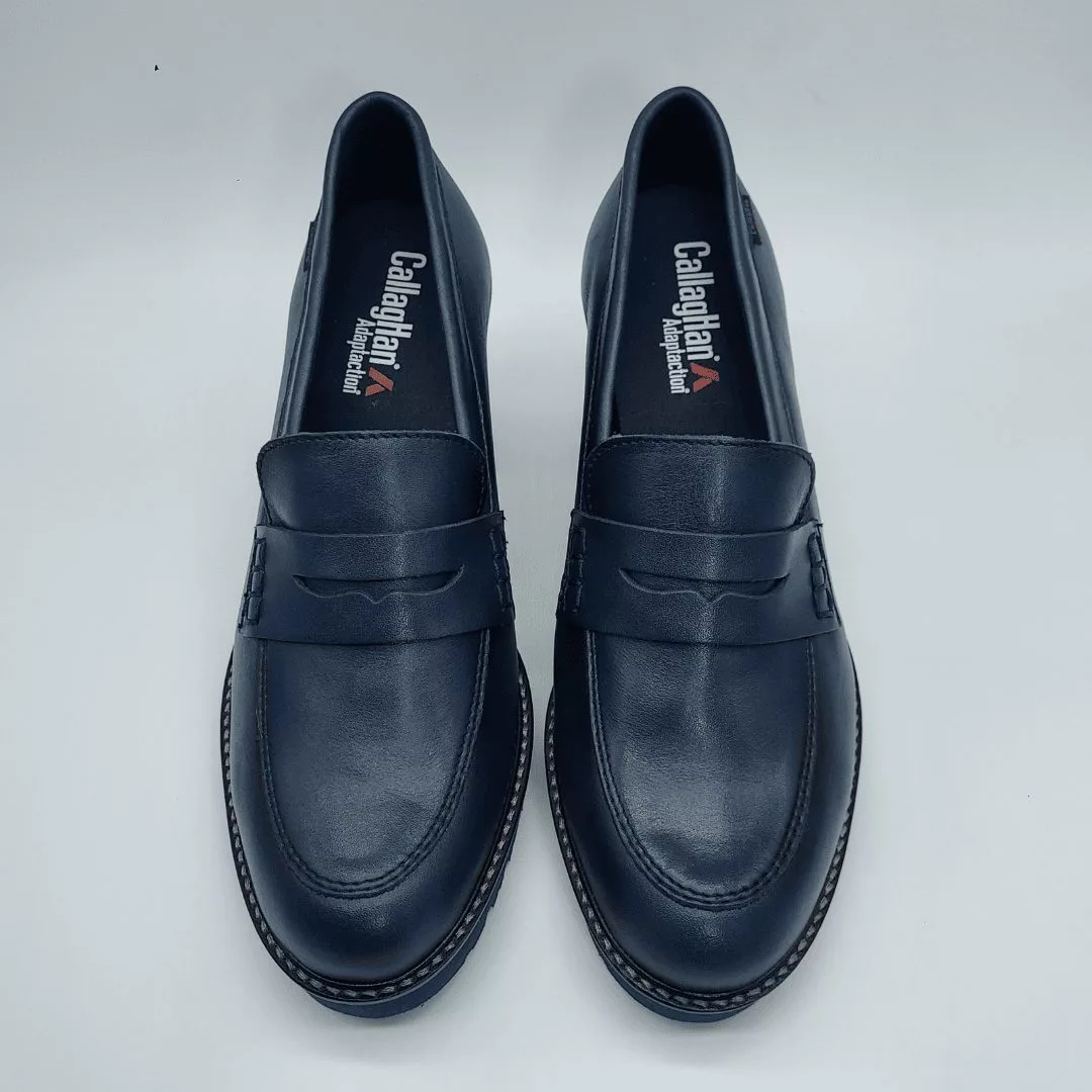 Callaghan Mod. 30806, Calzado tipo Mocasín en Piel de la máxima calidad que ha sido curtida con Aceites y Ceras naturales, acabado Crimy Marino Jazz, Altura Tacón 7,5 cm., Plataforma 2 cm., Forro en Material Textil Transpirable, con «Callaghan Adaptaction«, Plantilla Extraible, Suela Adaplite.