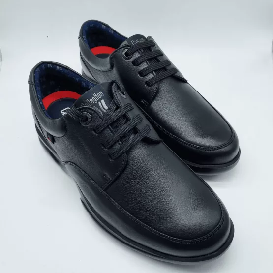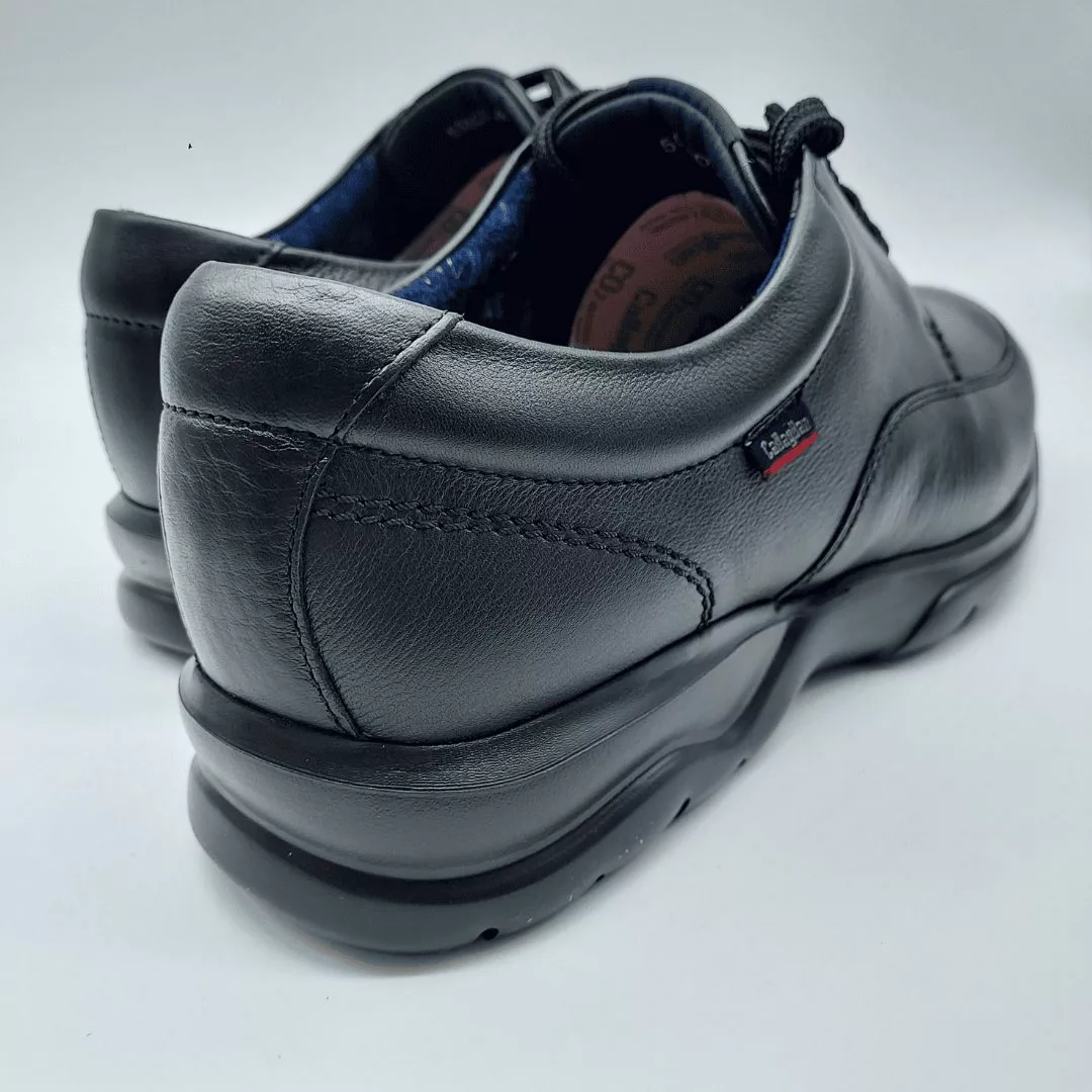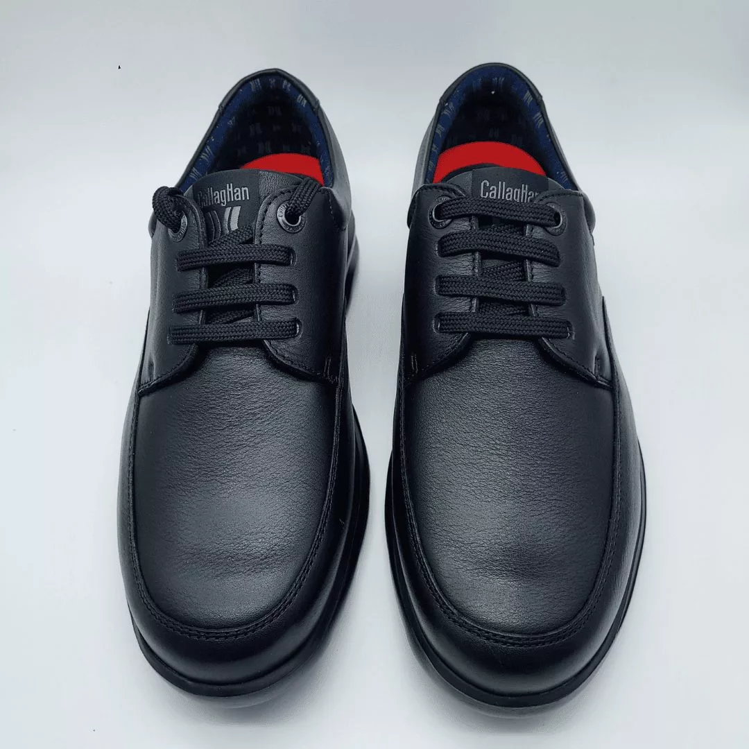 Callaghan Mod. 55600 Cambridge, Calzado tipo Blucher en Piel de Alta Calidad acabado color Negro, Altura Tacón 3,5 cm., Cierre mediante Cordones, con «Callaghan Adaptaction«, Plantilla Extraible, Forro Transpirable, Antibacteriano y Antiolor. Hecho en España.