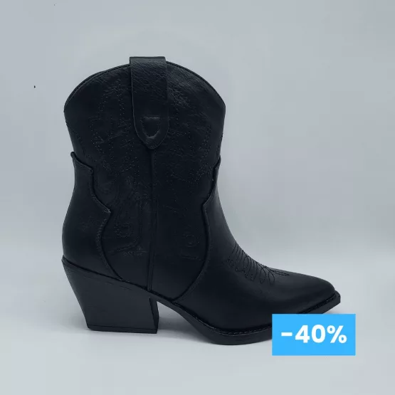 Calzapies Mod. 1723002, Botín estilo Cowboy en Piel Sintética, acabado color Negro, Tacón Grueso de 6 cm. Cierre mediante Cremallera Lateral. Envío, Devolución y Reembolso