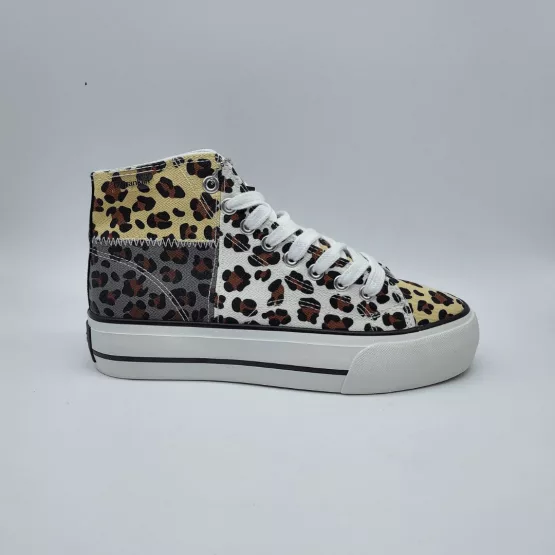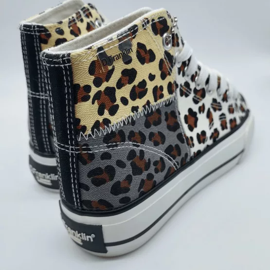 D. Franklin Mod. 22038, Botin en lona, Serie Limitada One Way Patchwork Leo, con doble suela de goma Extra-Light inyectada blanca, plantilla antibacteriana, cierre mediante cordones de algodón. Envío, Devolución y Reembolso