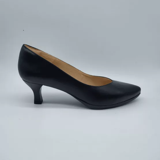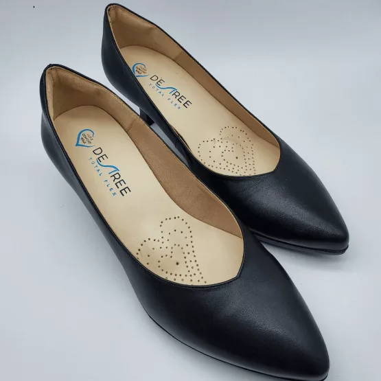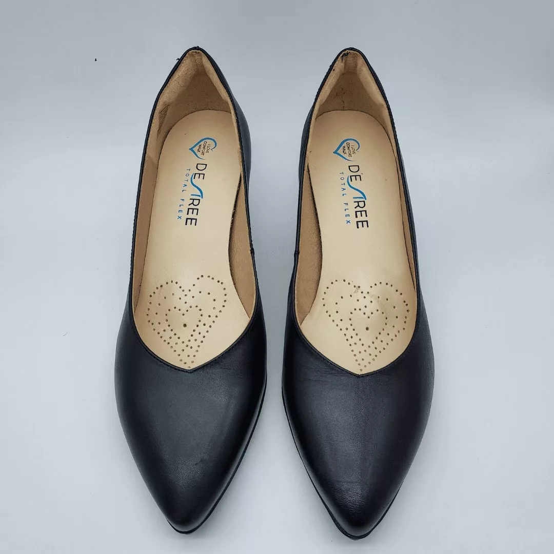 Desireé Mod. Mari 7, Salón en Piel acabado color Negro. Tacón Bajo de 5 cm. Suela de goma termoplástica, exterior piel e interior intech transpirable hipoalérgico. Hecho en España.