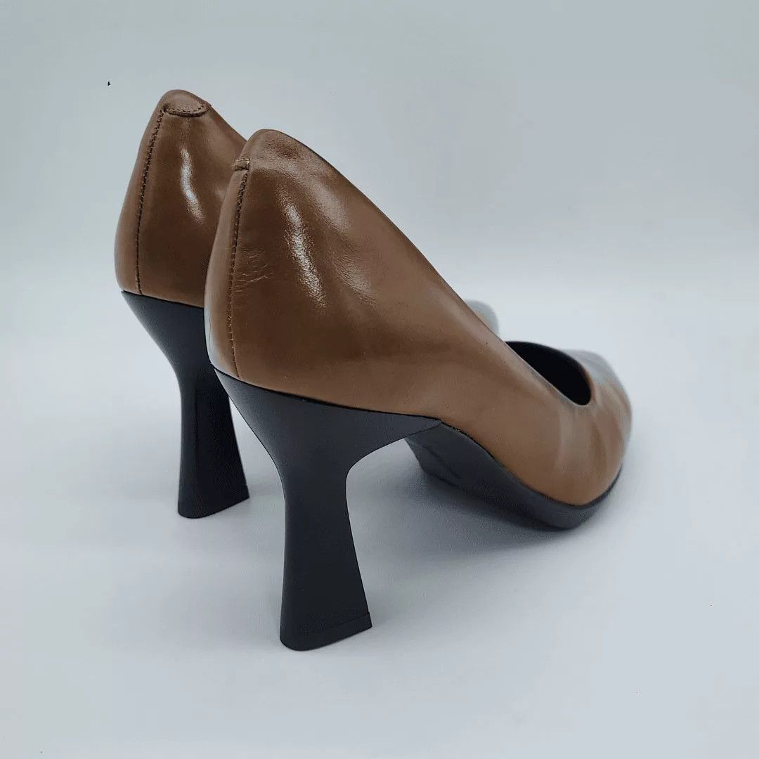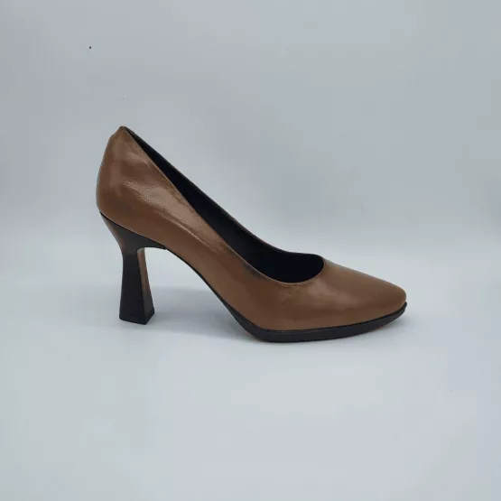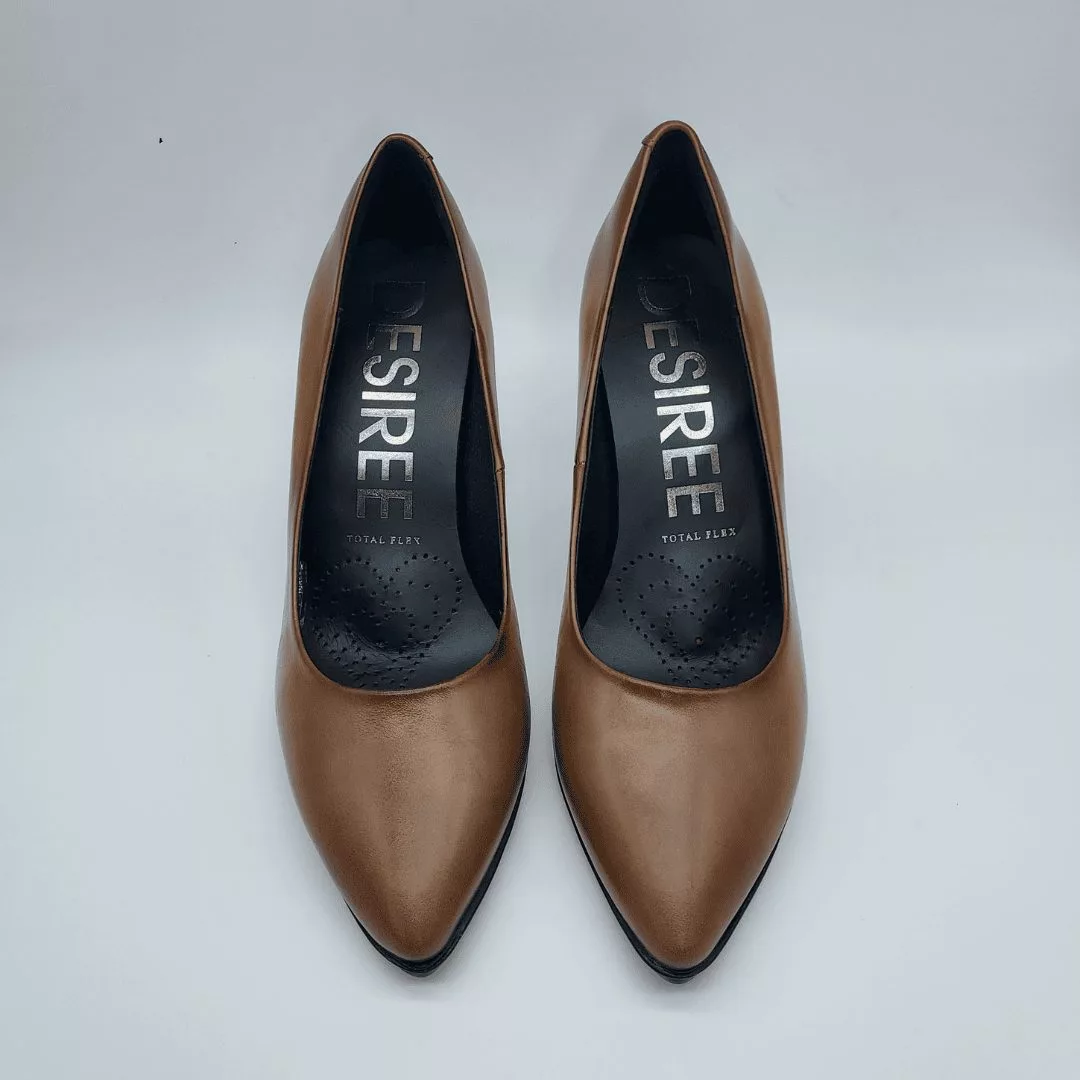 Desireé Mod. Saga 8, Salón en Piel Acabado Nick color Taupe. Con Sistema Total Flex anti impactos, Tacón tipo «Carrete» de 8,5 cm. Suela de goma termoplástica, con Plantilla Interior Acolchada. Hecho en España.