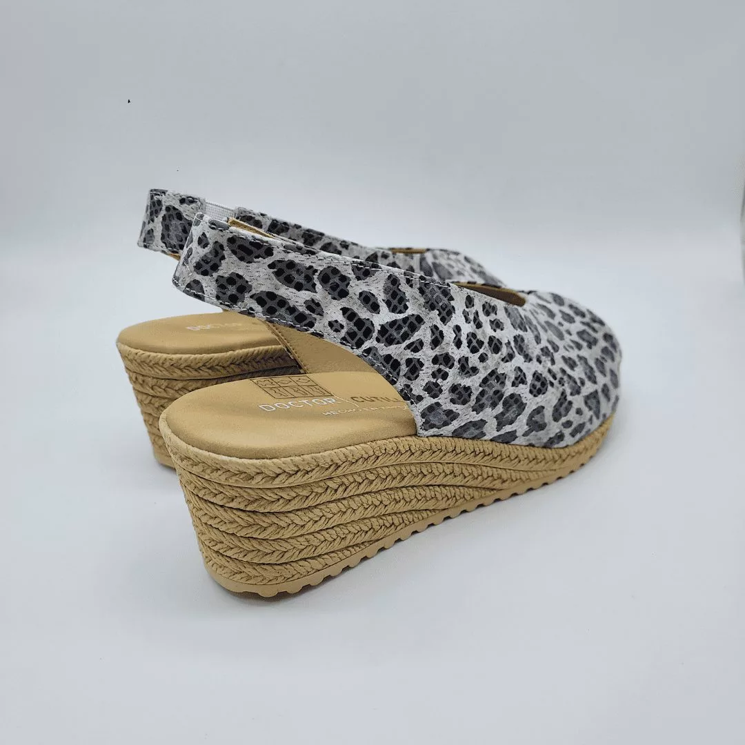 Doctor Cutillas Mod. 30504, Sandalia en Piel acabado color Beig con Apertura en Puntera (estilo Peep-Toe). Cuña con Trenzado tipo Yute de 5,5 cm y Plataforma delantera de 1,5 cm., Plantilla Acolchada. Cierre mediante Tira elástica trasera para un ajuste perfecto. Suela Dentada. Hecha en España.