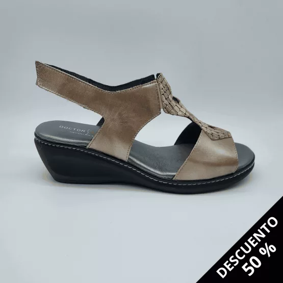 Doctor Cutillas Mod. 32156, Sandalia de cuña con una combinación de piel lisa en Camel fantasía reptil y Taupe nacarado. Con cierre mediante velcro para un ajuste óptimo al pie, plantilla acolchada. Fabricada en España. Envío, Devolución y Reembolso
