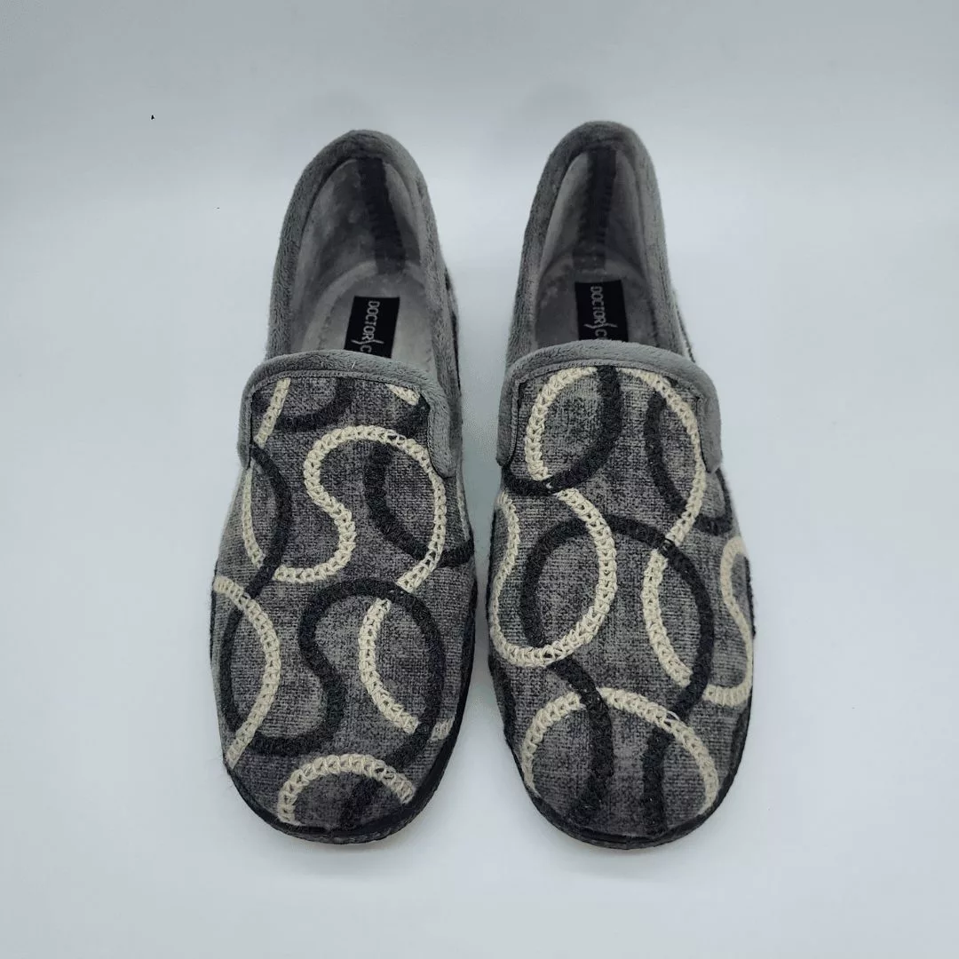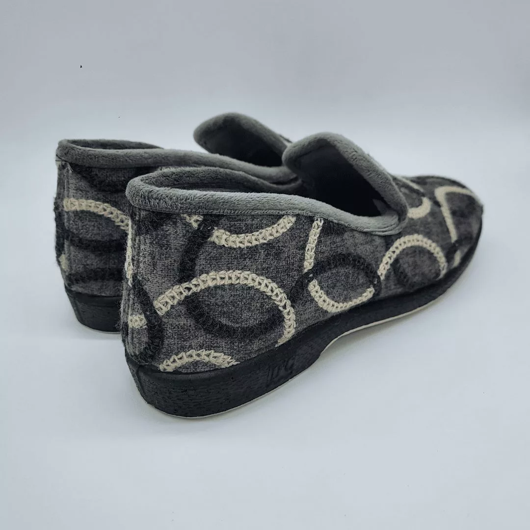 Doctor Cutillas Mod. 325, Zapatilla Cerrada con Bordado Geométrico acabado color Antracita con Ribete en Color gris y Suela Esponjosa Color Negro. Forro Interior Textil con Aloe Vera. Hecha en España.