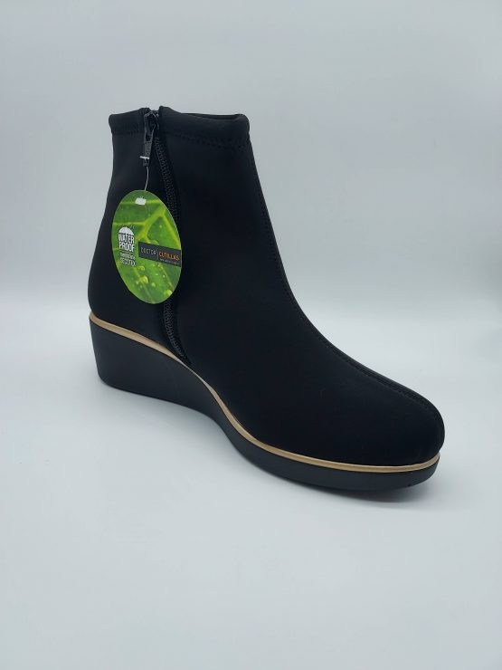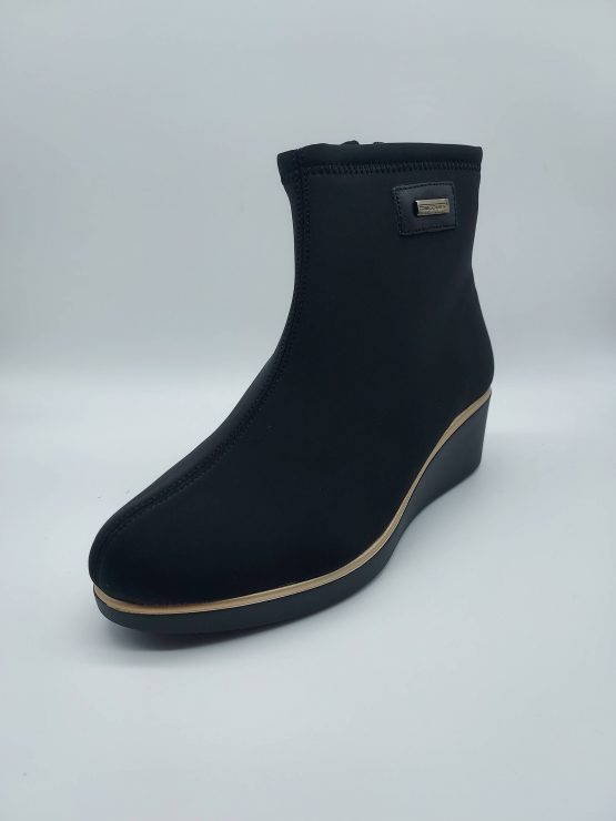 Doctor Cutillas Mod. 64816, Botín en Licra con Tecnología Secotex Waterproof acabado color Negro, Cierre mediante Cremallera Lateral, Forro Interior Textil, con Cuña Trasera de 4,5 cm. y Plataforma Delantera de 1 cm. Suela de Goma Antideslizante. Plantilla Extraible. Hecho en España. Envío, Devolución y Reembolso