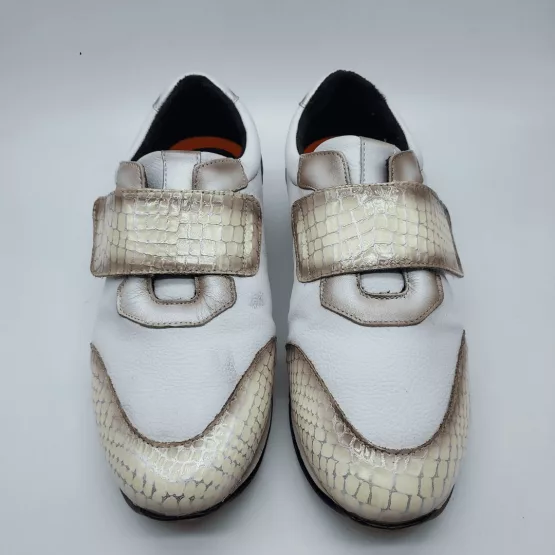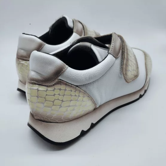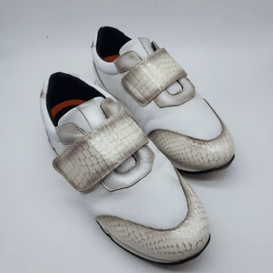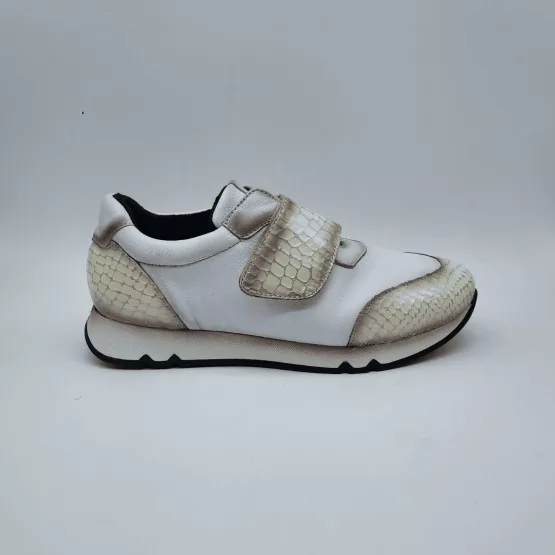 Doctor Cutillas Mod. 82815, Deportivos en Piel Lisa combinada con Piel Acharolada simil cocodrilo acabado color Blanco, Cierre mediante Velcro Ancho, Forro Interior Textil con Aloe Vera, Plantilla Extraible. Hechos en España. Envío, Devolución y Reembolso