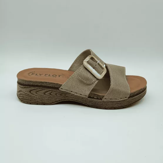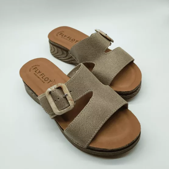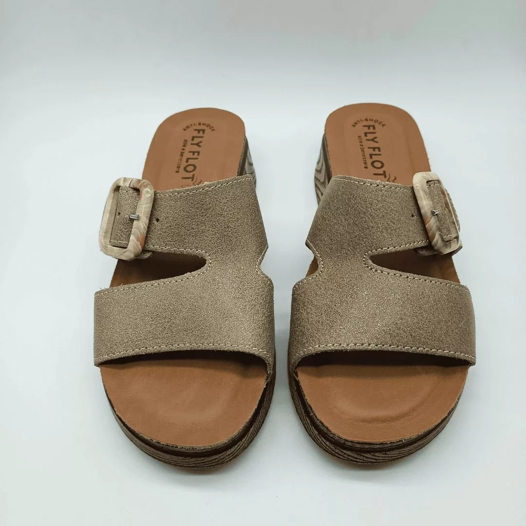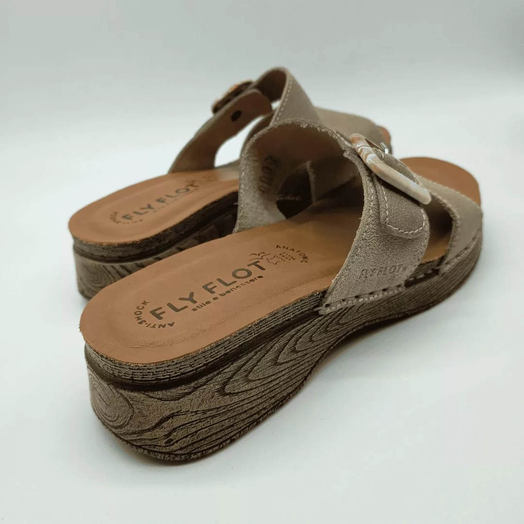 Fly Flot Mod. 72074-EG, Sandalia en Piel acabado Beige, Plantilla de Piel Anatómica y Anti-Shock, Cuña de 3 cm. de altura y plataforma de 1,5 cm, Cierre Ajustable mediante Hebilla. Con detalles de Costura cosidos a mano.