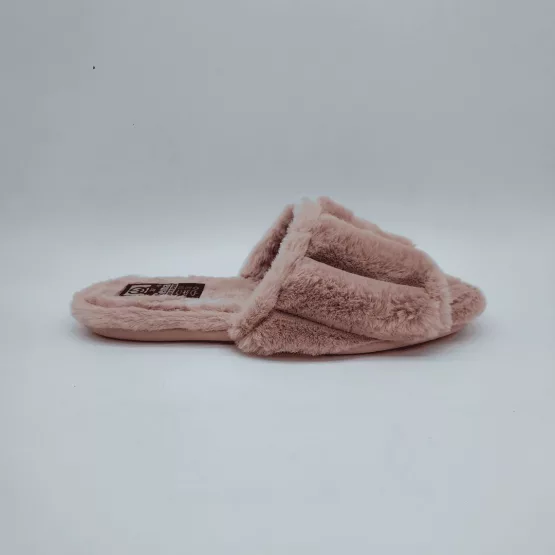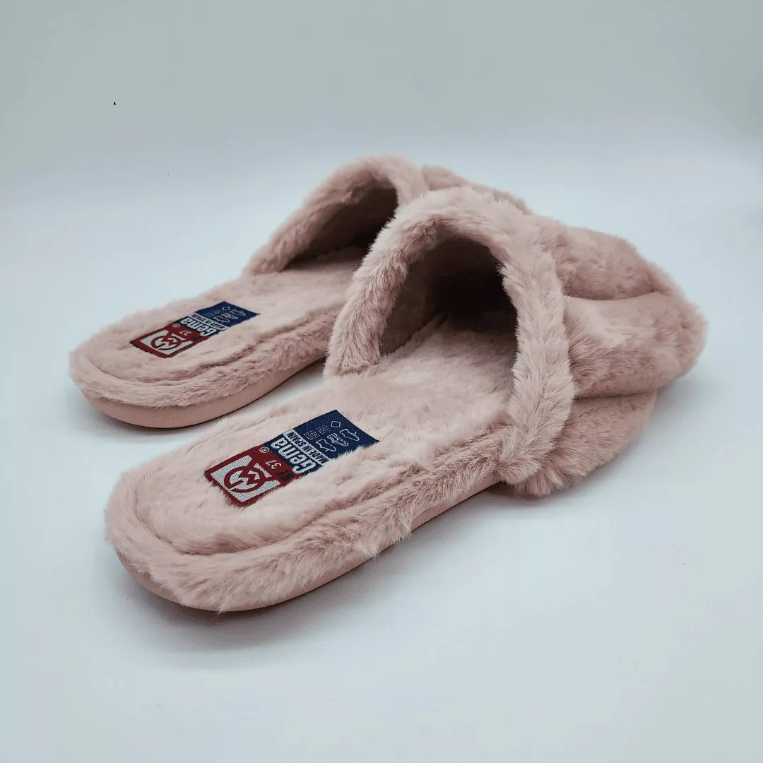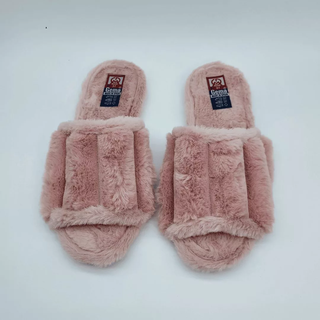 Gema García Mod. 100-2, Zapatilla Plana Abierta de Tira Fruncida acabado Ortiga Rosa, con Forro Interior Suave, Exterior de Pelo y Plantilla Acolchada. Suela de Caucho. Hechas en España.
