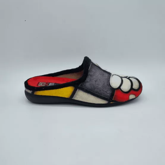 Gema García Mod. 7000-11, Zapatilla Plana Abierta acabado color Negro con estampado «Mano Mouse», Forro Interior Suave, Ribete de Pelo y Plantilla Acolchada Extraible. Suela de Caucho. Hechas en España.