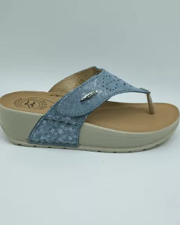 Gema García Mod. 7206-1, Zapatilla de verano con Cuña, acabado en rizo tipo toalla color Marino, suelo vulcanizado, cerrada por parte delantera. Envío, Devolución y Reembolso