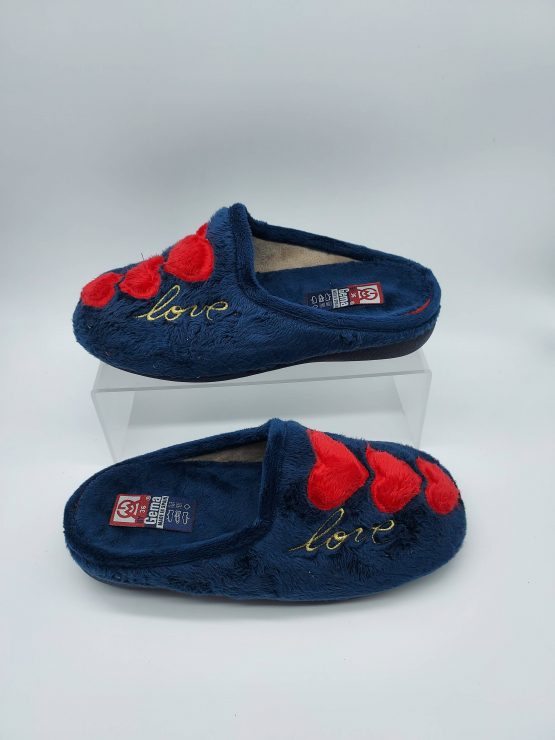 Gema García Mod. 7400-42, Zapatillas de Invierno con Cuña Baja, acabado Marino con fondo de Corazones, con plantilla extraible. Hechas en España. Envío, Devolución y Reembolso