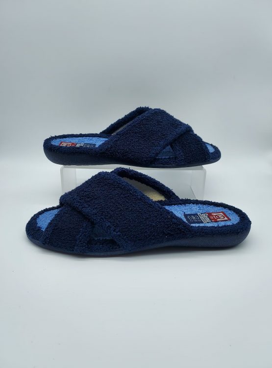 Gema García Mod. 7808-4, Zapatilla de verano, Abierta en parte delantera, Cruzada acabado Rizo Swin, color Azul Marino/Aguamar, suelo vulcanizado. Hecha en España. Envío, Devolución y Reembolso