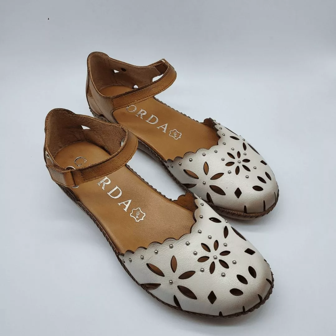 Giorda Mod. 28935, Sandalia en Piel acabado Mostaza combinado con Cuero, Troquelado en pala, cerrada en Talón, Cierre mediante Velcro. Altura de 3 cm en trasera y 1,5 cm en delantera. Hecha en España. Envío, Devolución y Reembolso