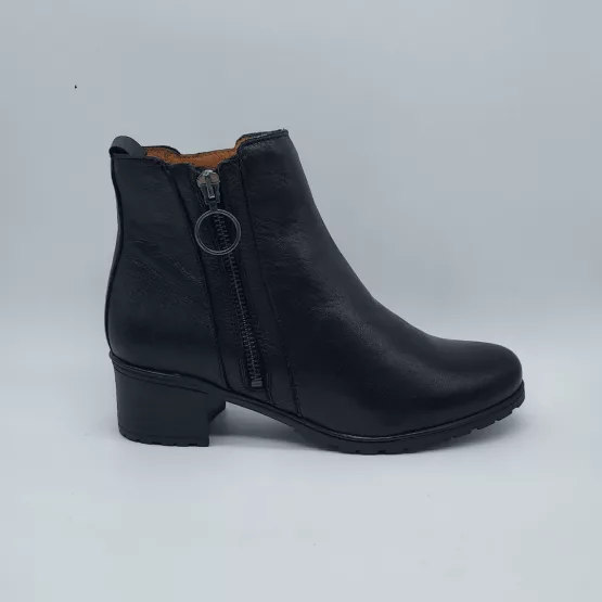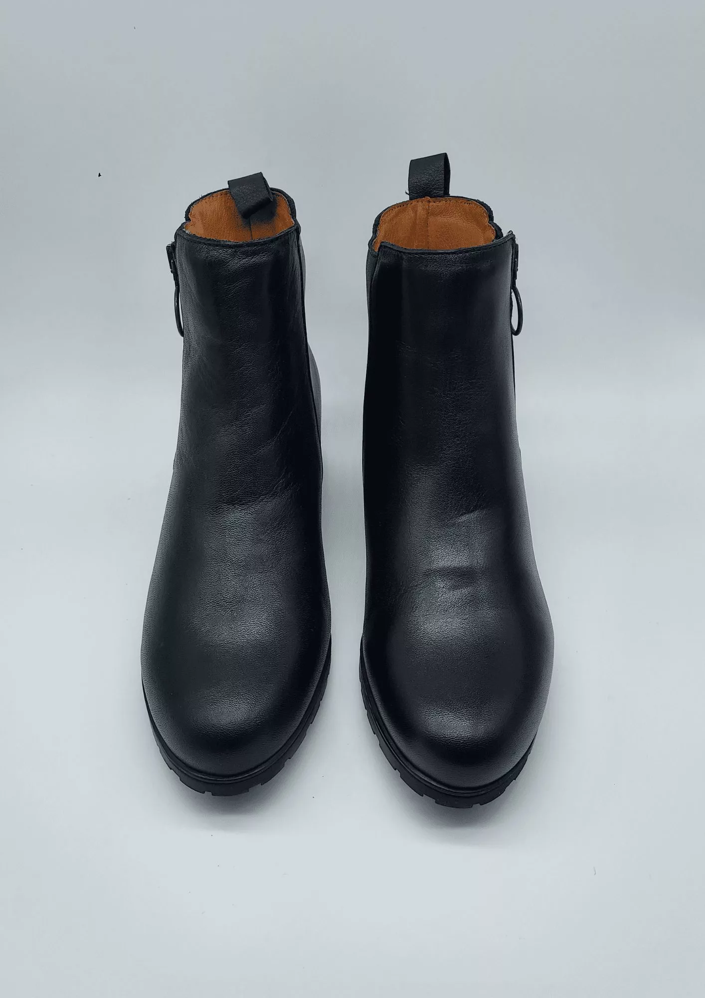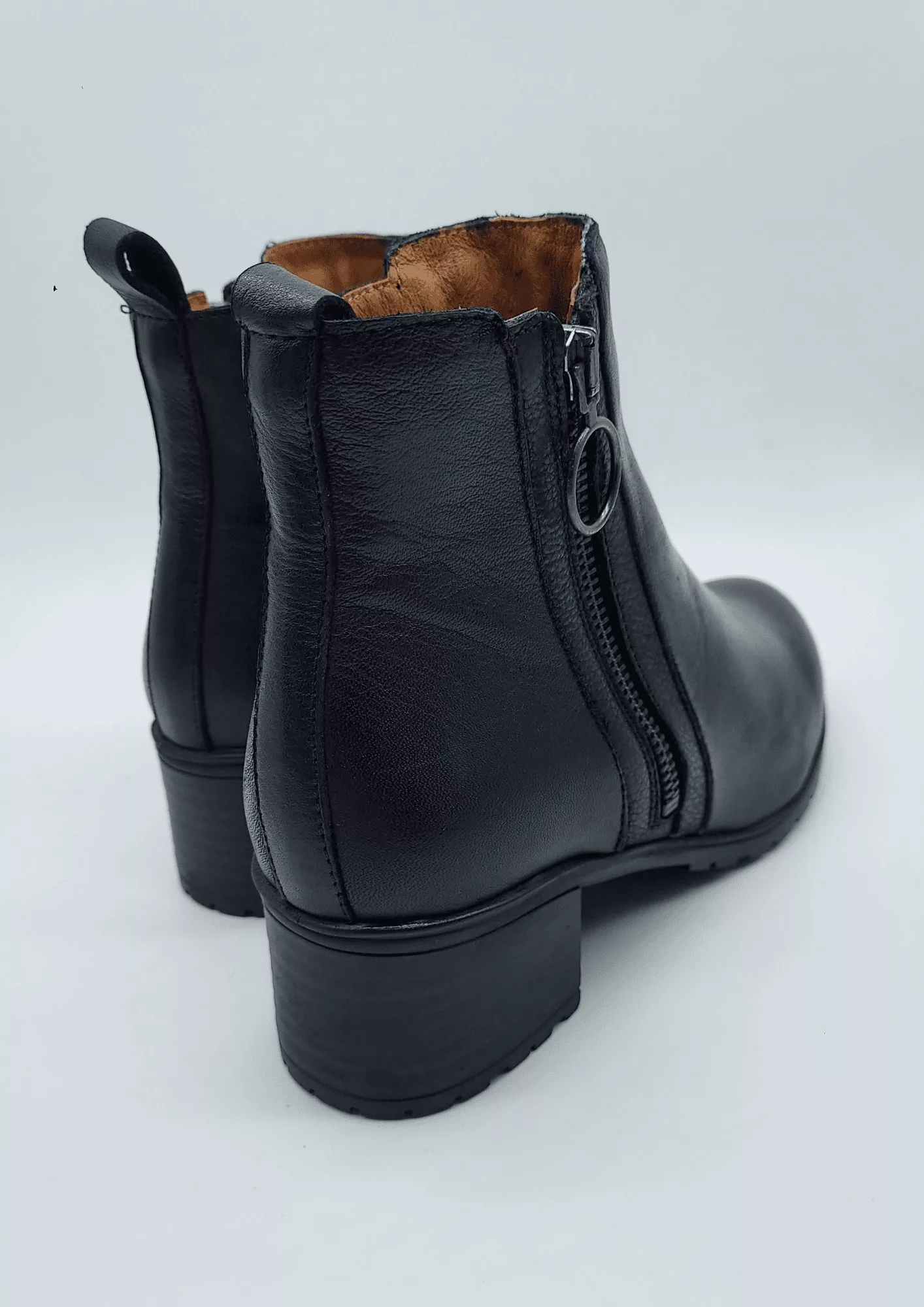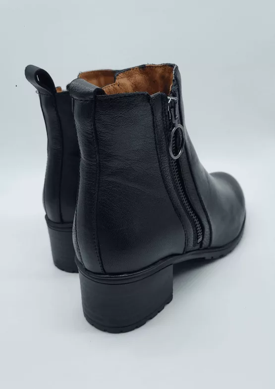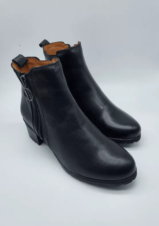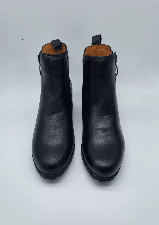 Giorda Mod. 37947, Botín en Piel Lisa, Acabado Color Negro, Tacón Grueso de 4 cm. Cierre mediante Cremallera Lateral. Plantilla en piel acolchada y suela de goma. Hecho en España. Envío, Devolución y Reembolso