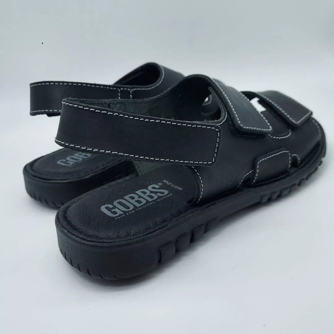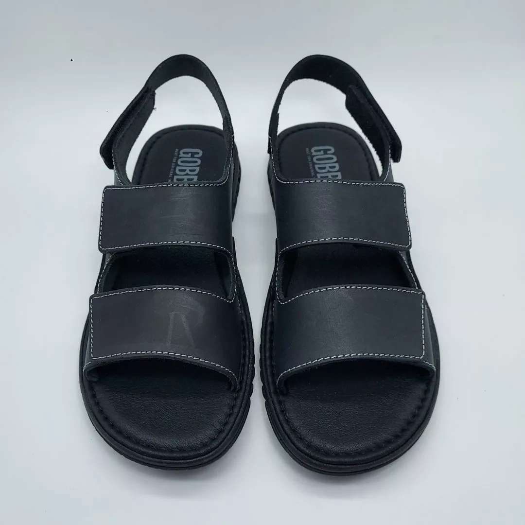 Gobbs Mod. 1390, Sandalia en Piel Apure acabado color Negro. Cierre mediante Doble Velcro Ajustable Ancho y Ajustador Trasero mediante Velcro. Plantilla Acolchada. Hecha en España.