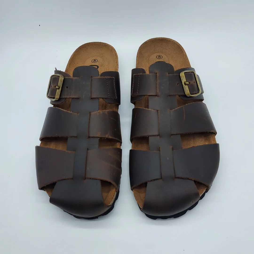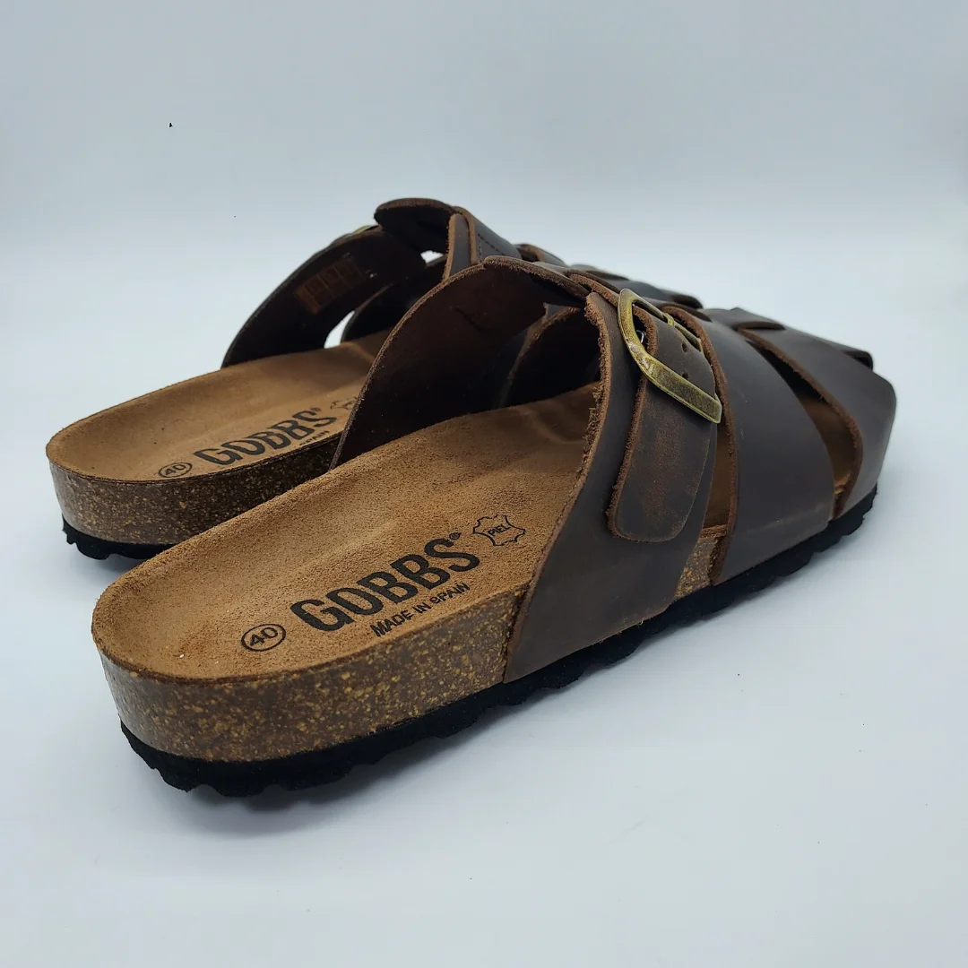 Gobbs Mod. 520098C, Sandalia tipo Zueco con Puntera Cerrada en Piel, acabado color Nut, Plantilla Anatómica en Piel, con cierre mediante Hebilla Regulable. Con Aberturas delanteras (transpiración). Hecho en España.