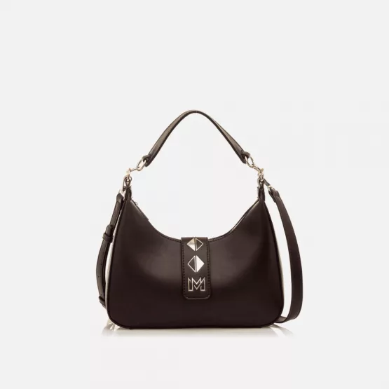 Mariamare Mod. C58972, Bolso Tipo Hobo modelo Maday color Burdeos con diseño estructurado y detalles metálicos en solapa frontal, incluye asa corta y correa larga extraíble, ofreciendo la posibilidad de llevarlo al hombro o cruzado. Cierre con cremallera con cierre magnético.