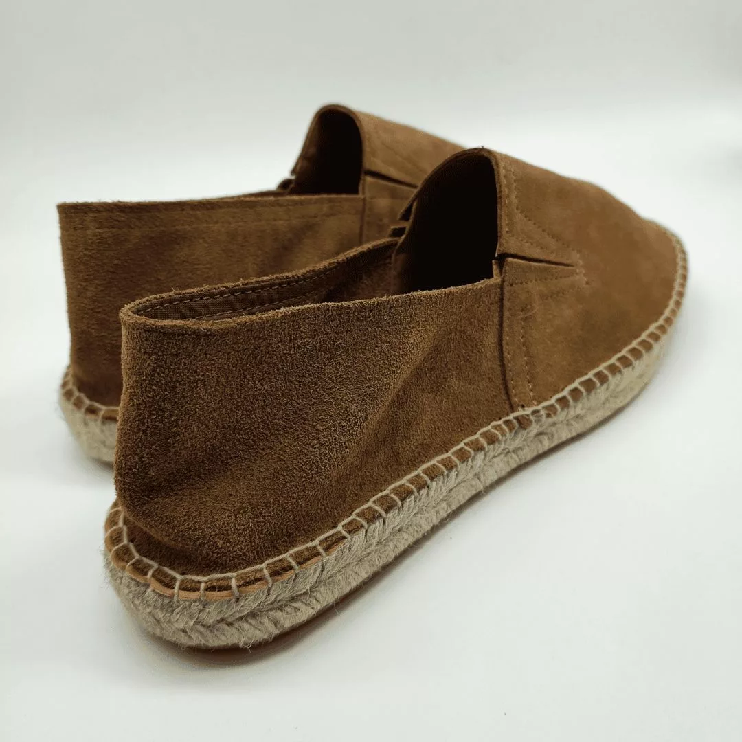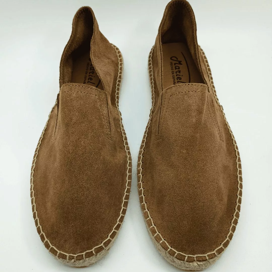Mariel Mod. 140, Alpargata Plana para Hombre confeccionada en Serraje acabado color Muscade, con partes elásticas en pala para facilitar su puesta. Suela de Yute. Hecha en España.