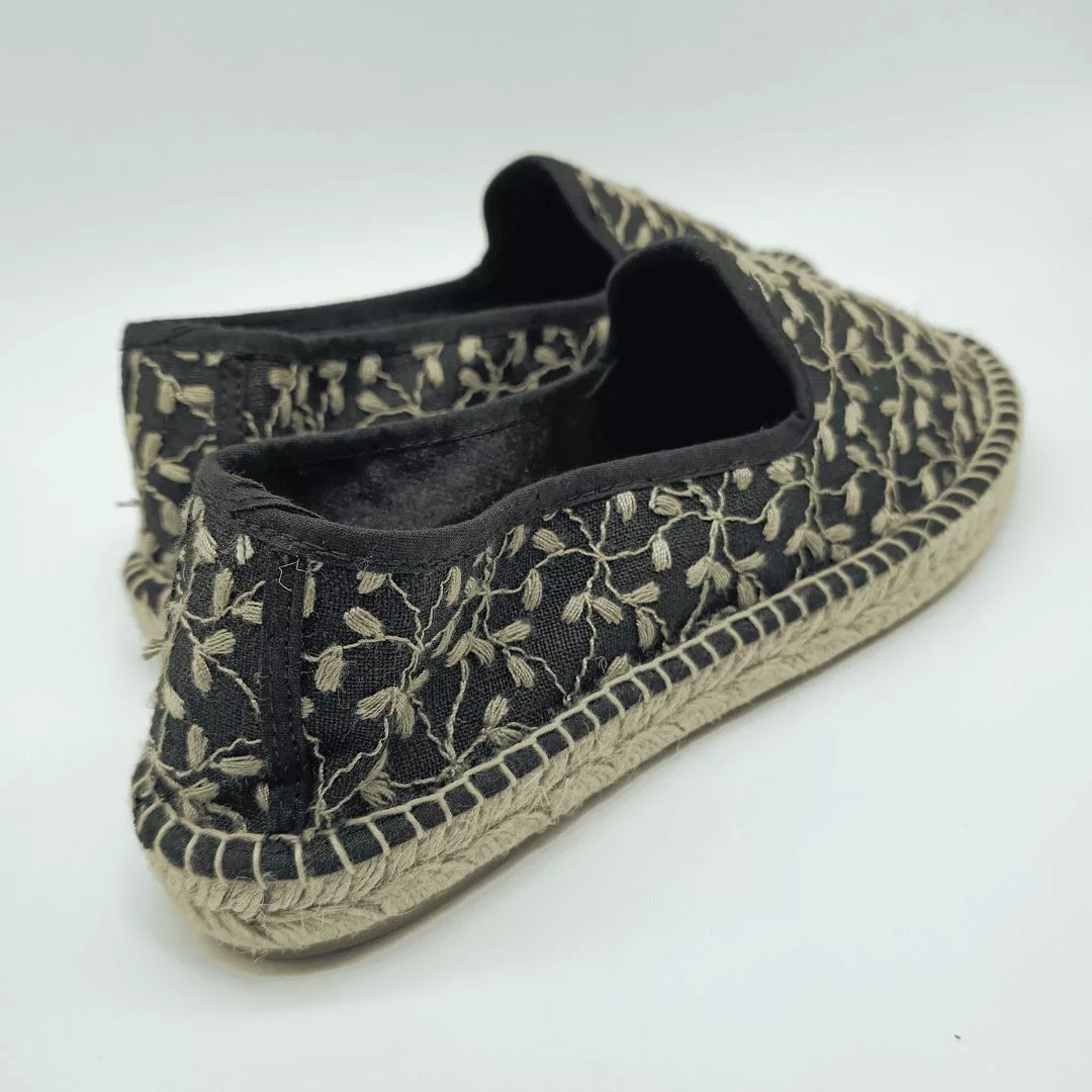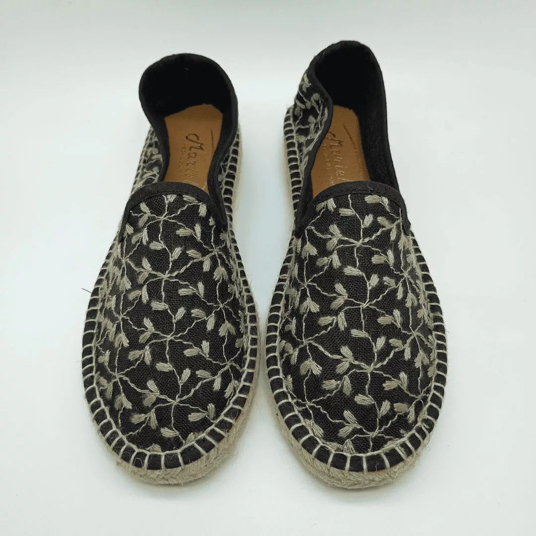 Mariel Mod. 161, Alpargata Plana Cerrada en Textil Bordado acabado Sicario Negro. Suela de Yute. Hecha en España. Envío, Devolución y Reembolso