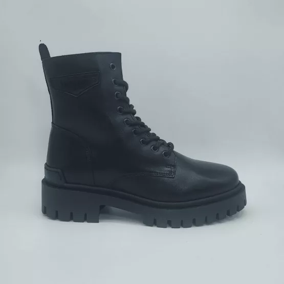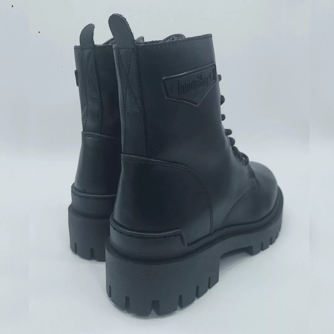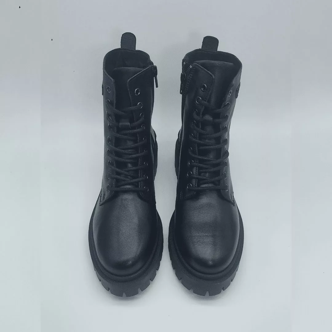 Mesquita Shoes Mod. 5060, Botín estilo Militar para Mujer en Piel, Acabado color Negro. Planta Acolchada en Piel. Cierre mediante Cordones con Cremallera Lateral para facilitar su puesta. Altura Tacón 4 cm. y Plataforma 2 cm. Hecho en Portugal.