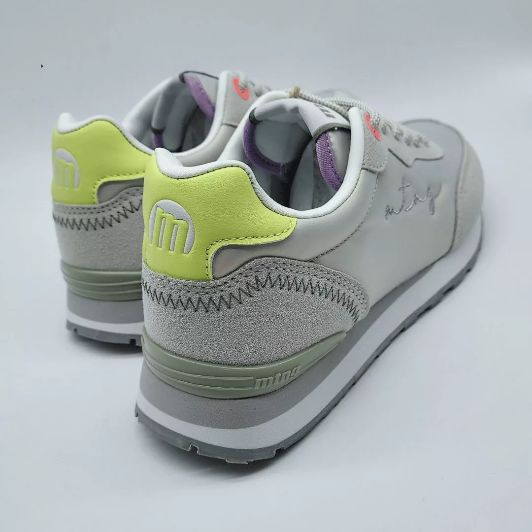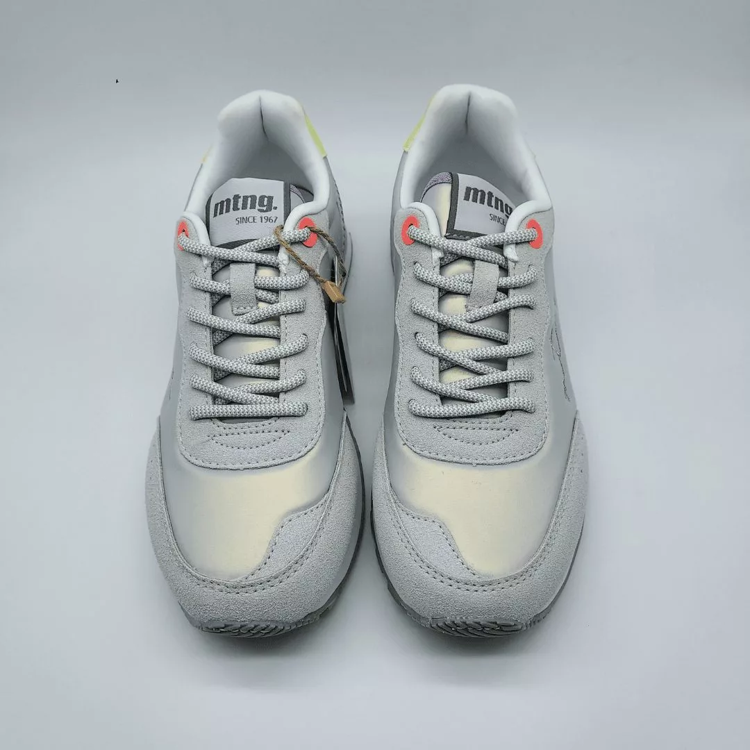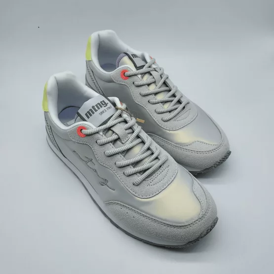 Mustang Mod. 60439, Sneaker hecho en Tejido Sintético combinado con Textil, Acabado Joggo Clasic color Plata combinado con grises y pastel, Cierre mediante Cordones, Altura Suela 3 cm., con interior y planta en Textil.