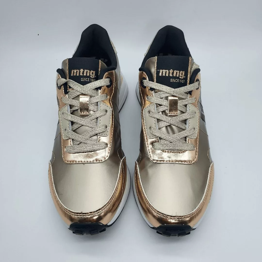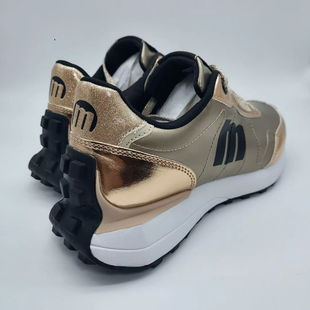 Mustang Mod. 60779, Deportivo Zinc Acabado color Oro con detalles en color Negro y Metalizados, Cierre mediante Cordones al Tono, Plantilla Extraíble con Tecnología Starfit y diseño Termoconformado con espuma Comfort Foam, Suela de Goma Plana de 2 cm. de altura.