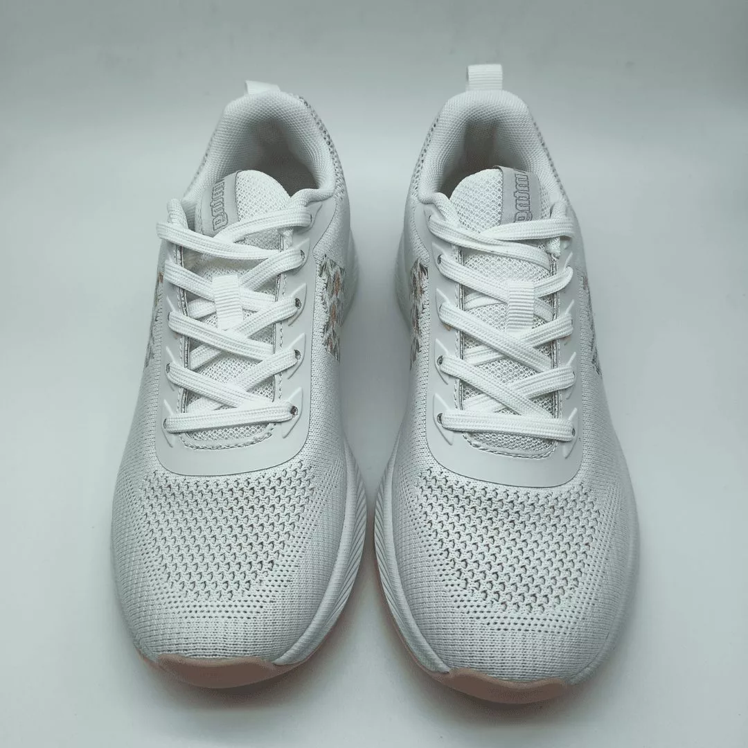 Mustang Mod. 60803, Zapatilla estilo Sport en Tejido Textil, Punta Redonda, Acabado Somo color Blanco con detalle del logo en bordado y multicolor, Tejido Transpirable. Cierre mediante Cordones Planos, Suela de Goma con Cuña de 2 cm.