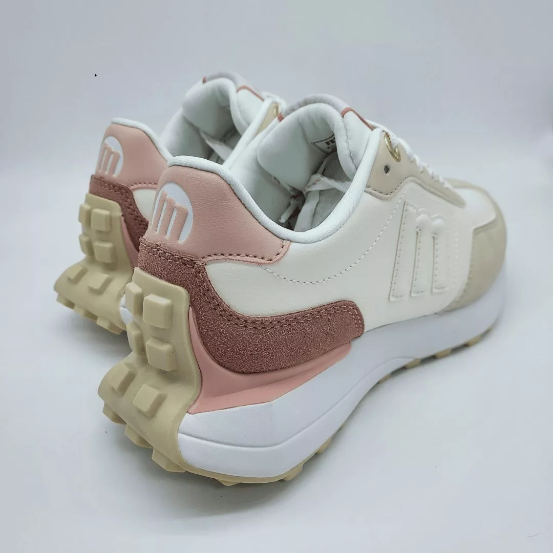 Mustang Mod. 60838, Deportivo Zinc Acabado color Blanco con detalles en color Rosa y Beige, Cierre mediante Cordones al Tono, Plantilla Extraíble con Tecnología Starfit y diseño Termoconformado con espuma Comfort Foam, Suela de Goma Plana de 2 cm. de altura.