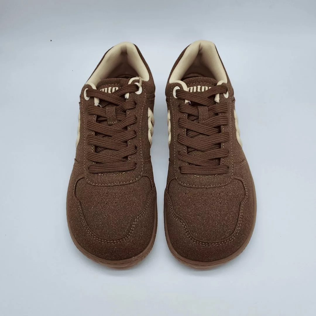 Mustang Mod. 60840, Deportiva Casual Barefoot modelo Free Aria Acabado color Marrón con detalles en color Crudo y Rosa, Cierre mediante Cordones al Tono, Puntera Ancha, Suela totalmente Plana (Cero Drop) y Flexible, con Plantilla de Transición. Certificado VEGANO sellado por INESCOP. Envío, Devolución y Reembolso