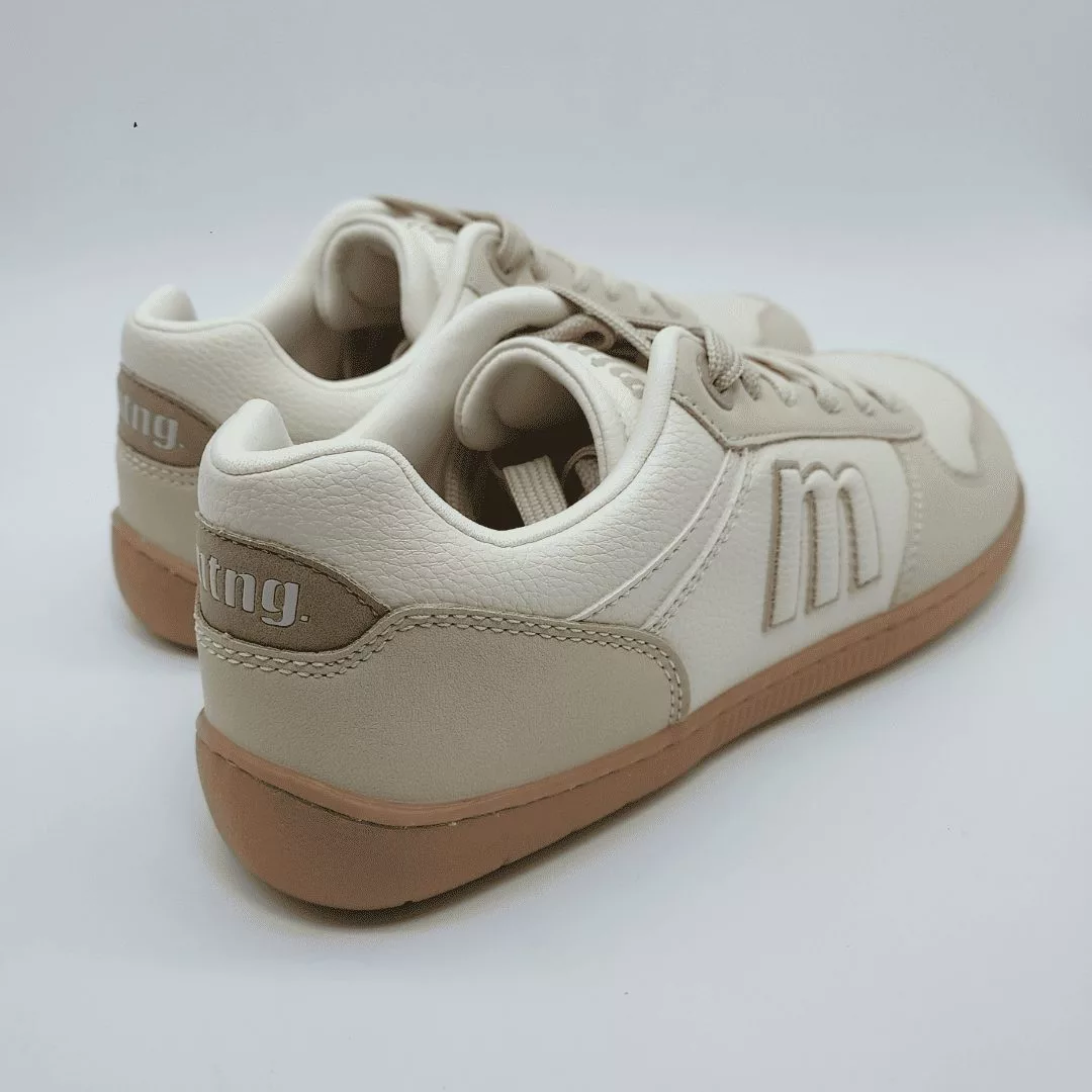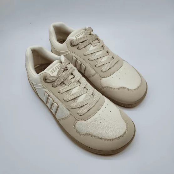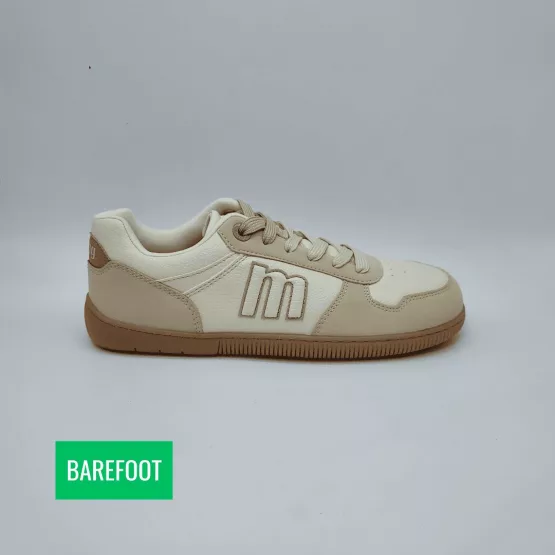 Mustang Mod. 60840, Deportiva Casual Barefoot modelo Free Aria Acabado color Beige con detalles en color blanco, Cierre mediante Cordones al Tono, Puntera Ancha, Suela totalmente Plana (Cero Drop) y Flexible, con Plantilla de Transición. Certificado VEGANO sellado por INESCOP. Envío, Devolución y Reembolso