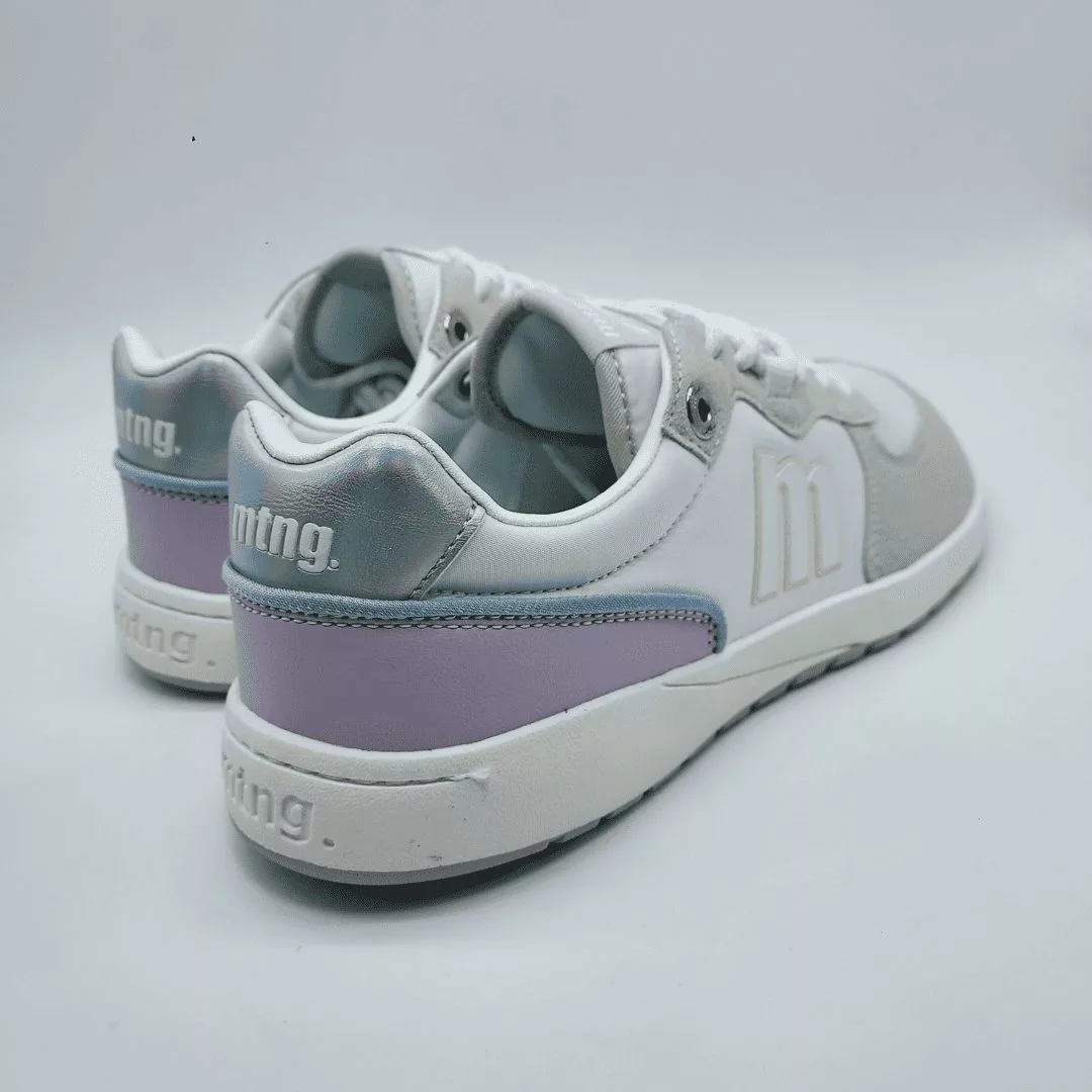 Mustang Mod. 60857, Zapatilla Barefoot modelo Free Apolo Acabado color Blanco con detalles en color Beige,Lila y Azul, refuerzo trasero con acabado Iridiscente. Cierre mediante Cordones, Puntera Ancha, Suela totalmente Plana (Cero Drop) y Flexible, con Plantilla de Transición. Certificado VEGANO sellado por INESCOP. Envío, Devolución y Reembolso