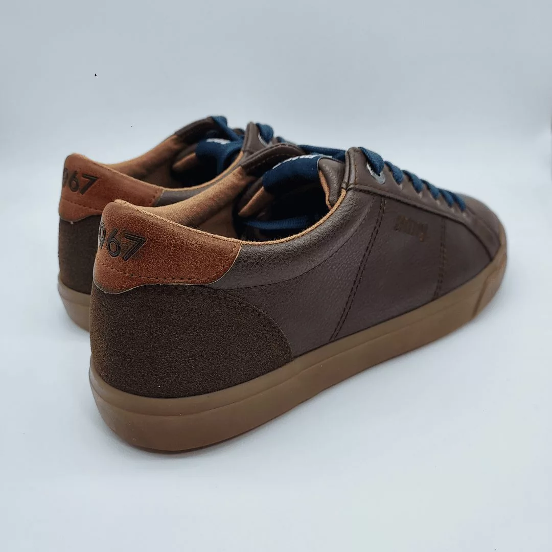 Mustang Mod. 84732, Zapatilla Aria estilo Casual en Tejido Sintético, Acabado Moka combinado con detalles en color Cuero, Cierre mediante Cordones, Suela Plana con interior y planta en Textil.