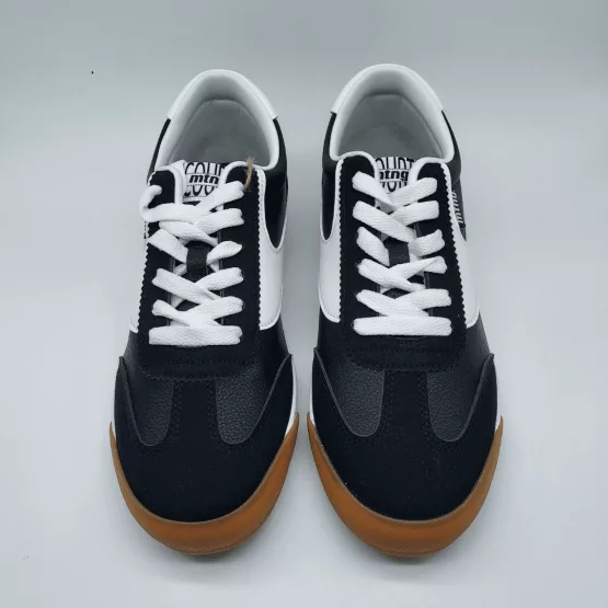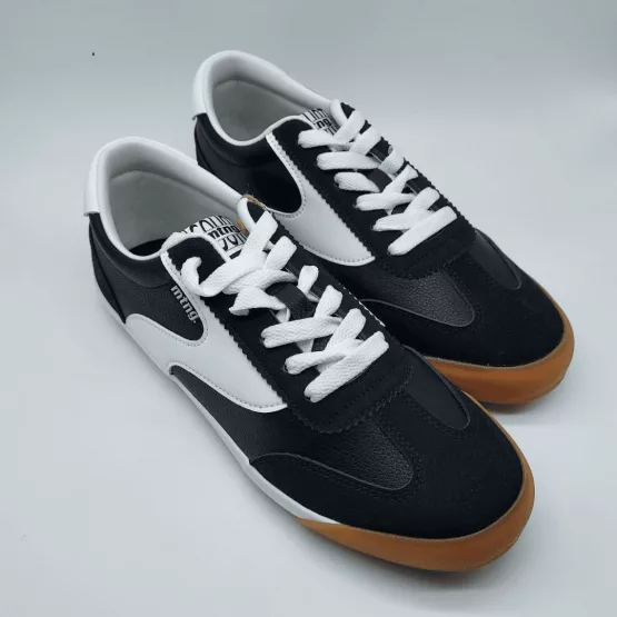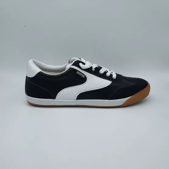 Mustang Mod. 84767, Deportivo Court en Tejido Sintético Acabado color Negro con detalles en Blanco, Cierre mediante Cordones Planos, Suela Plana de Goma color Caramelo y Blanca. Envío, Devolución y Reembolso