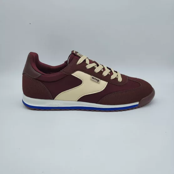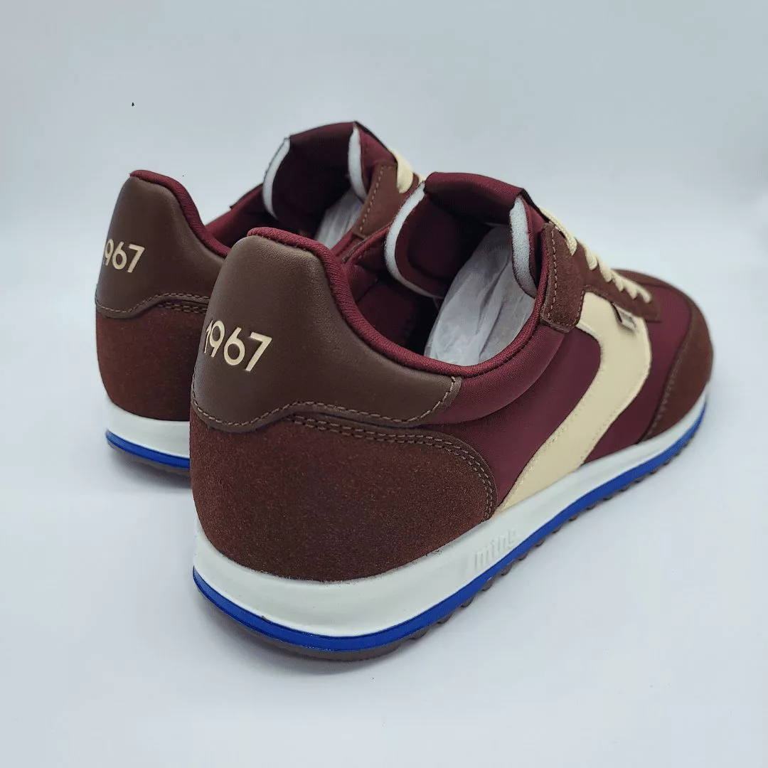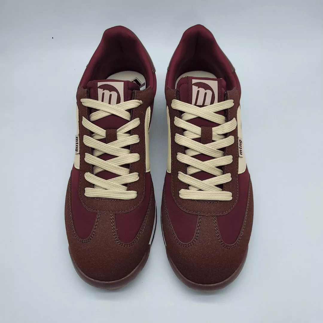 Mustang Mod. 84787, Deportivo Olympic en Textil combinado con Sintético Acabado color Marrón con detalles en Crema, Cierre mediante Cordones Planos, Plantilla de 4 mm con tecnología Starfit con espuma Comfort Foam, Suela Plana Bicolor Dentada.