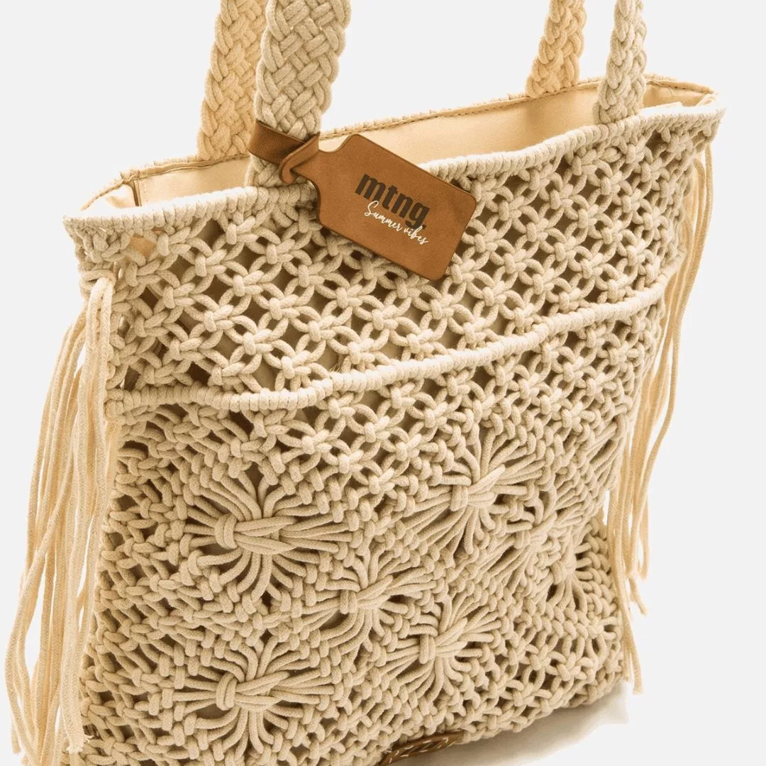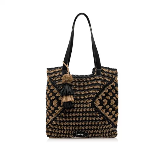 Mustang Mod. C57655, Bolso Shopper Dade hecho en rafia de papel con Diseño Trenzado en color Negro combinado con Cuero. Asas en tono Oscuro para llevar al hombro. Con detalle decorativo en forma de borla.