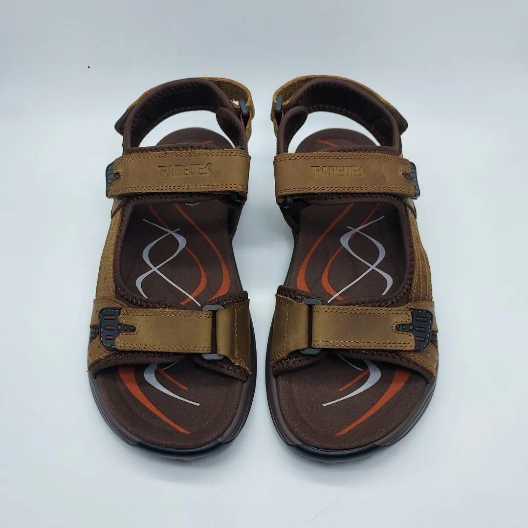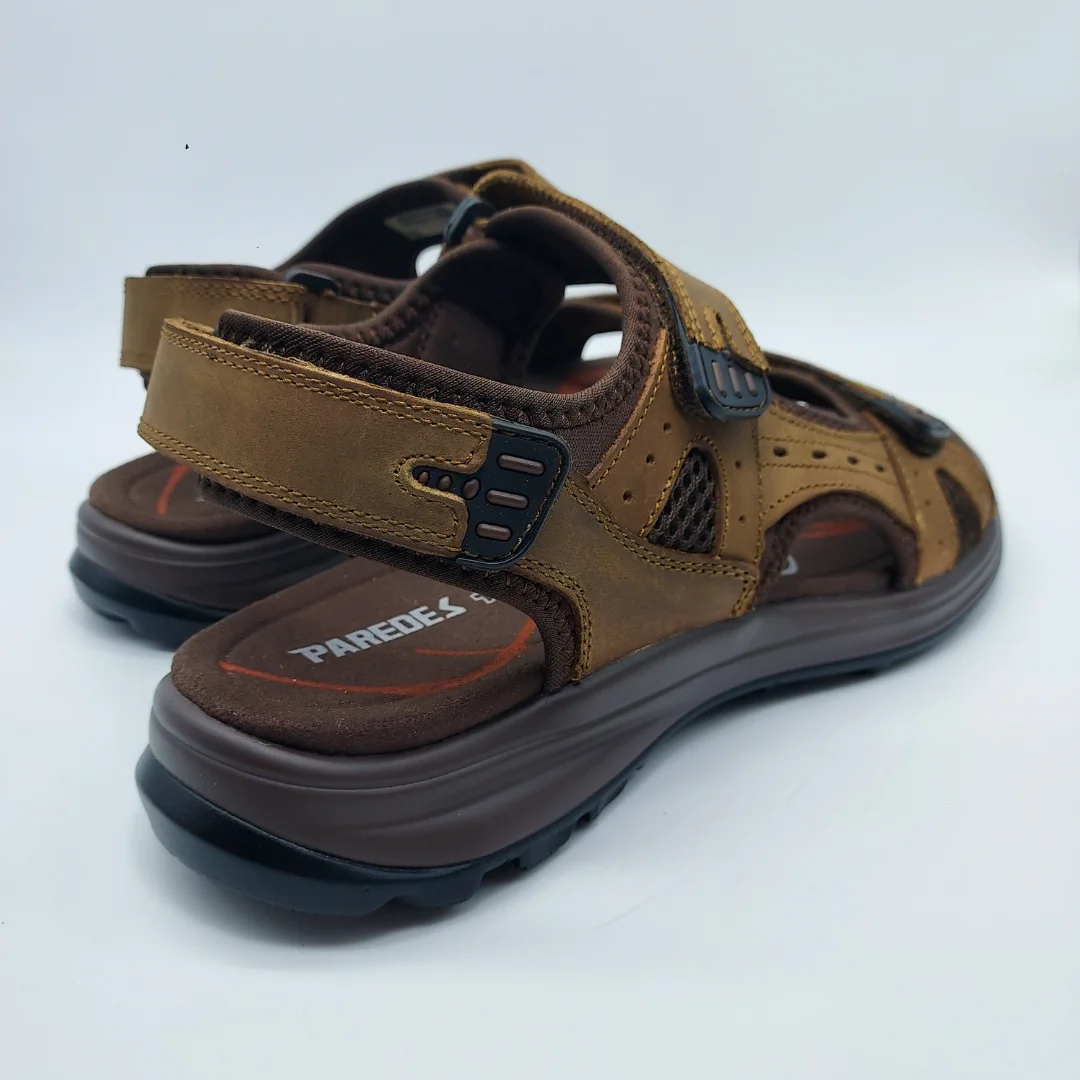 Paredes Mod. VP25171 MAC, Sandalia Outdoor en Piel Nobuck combinada con Textil, Acabado Adelan Color Marrón Claro, con Doble Cierre mediante Velcro y Ajustador Trasero. Altura Cuña 3 cm. y Plataforma Delantera 1 cm. Con Suela Phylon + TTR.
