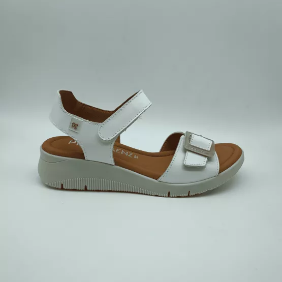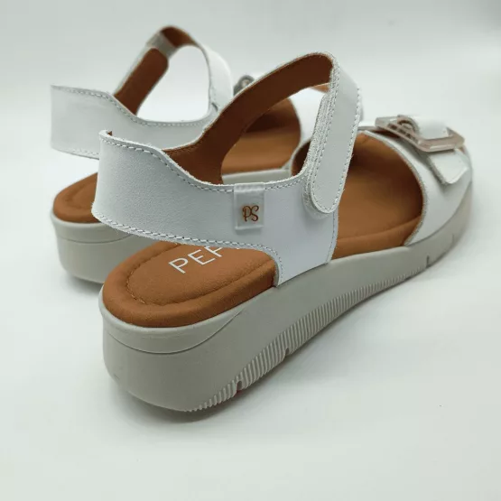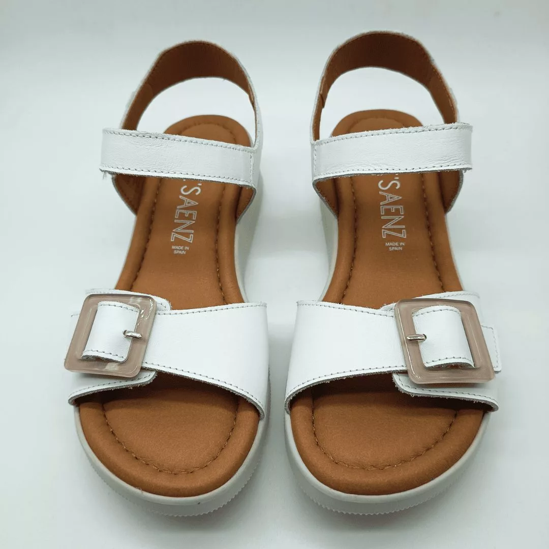 Pepe Sáenz Mod. PS10490, Sandalia en Piel de Vacuno acabado color Blanco, Planta Anatómica. Con Plataforma de 3,5 cm en trasera y 1,5 cm en delantera. Cierre mediante Hebilla en Tira Delantera y Velcro en Trasera. Hecha en España.