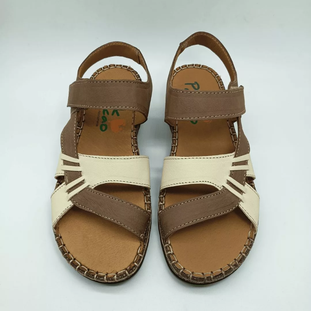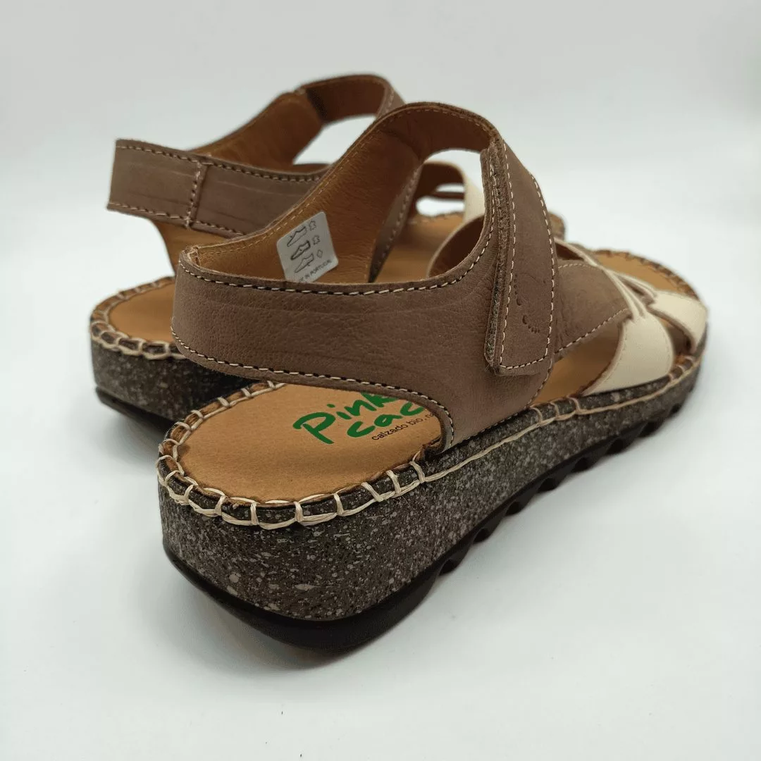 Pink Cacao Mod. W-2556, Sandalia en Piel Nobuck tipo Bio de Tiras Cruzadas acabado Támesis Parana, Plantilla Anatómica, Cuña de 3,5 cm. de altura y cierre mediante Velcro para una mejor sujección.