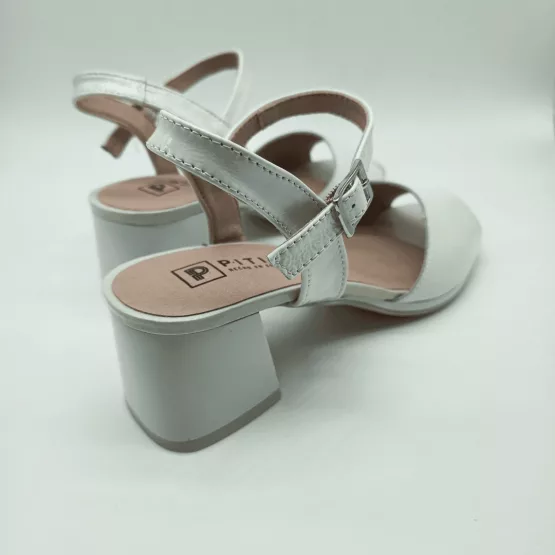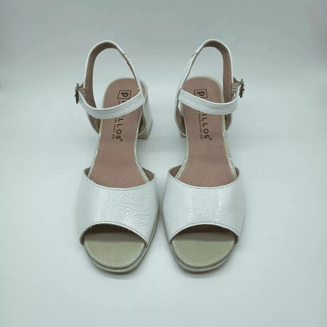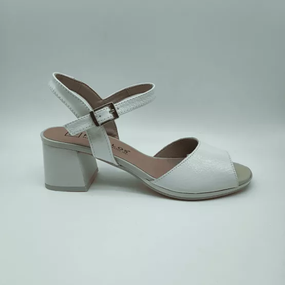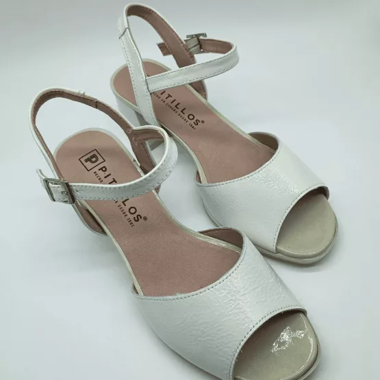 Pitillos Mod. 10537, Sandalia en Piel Acharolada acabado color Glacial con Tacón Grueso de 5,5 cm. de altura. Suela de Goma y Cierre mediante Hebilla. Hecha en España. Envío, Devolución y Reembolso