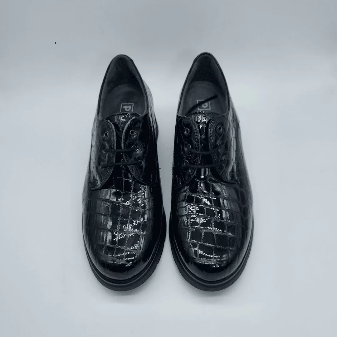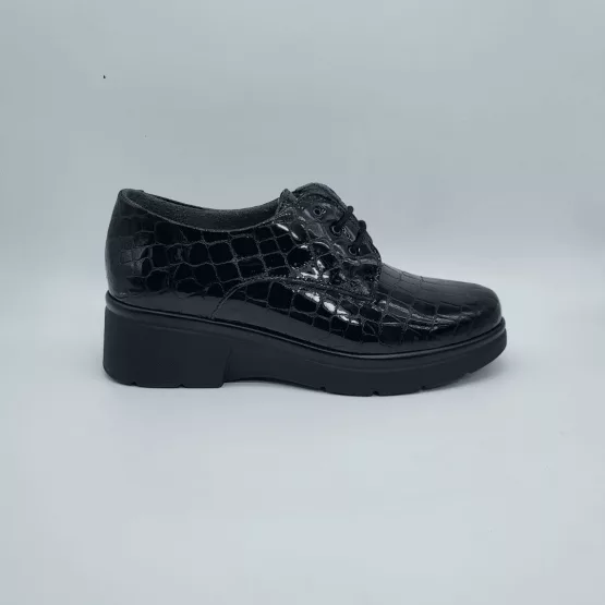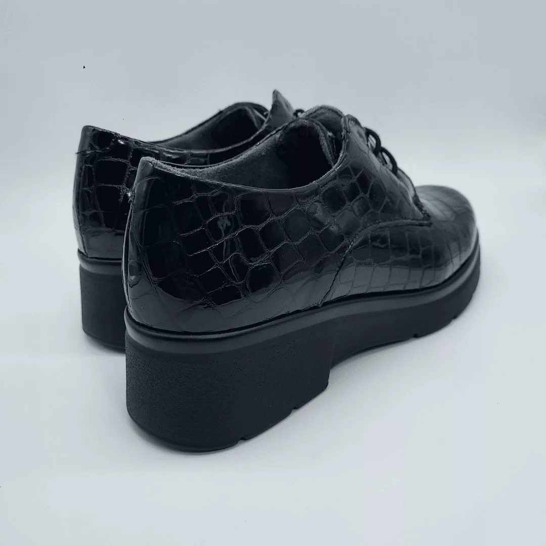 pitillos2Pitillos Mod. 10751, Blucher en Piel Acharolada acabado color Negro. Cierre mediante cordones. Tacón de 3,5 cm. y plataforma de 1,5 cm., Forro Textil Interior y Plantilla Extraible. Hecho en España.