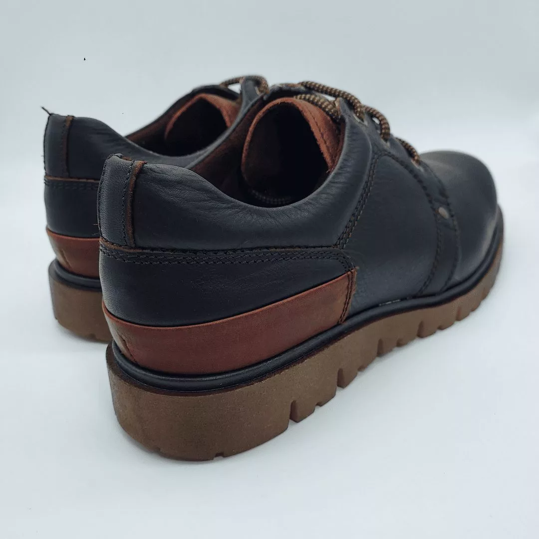 Pitillos Mod. 40200, Zapato Sport en Piel Engrasada acabado color Marrón, con forro interior textil afelpado, Plantilla Extraible Textil Afelpada, Altura Tacón 2,5 cm. y Plataforma 1 cm., Cierre mediante Cordones. Hecho en España.