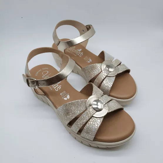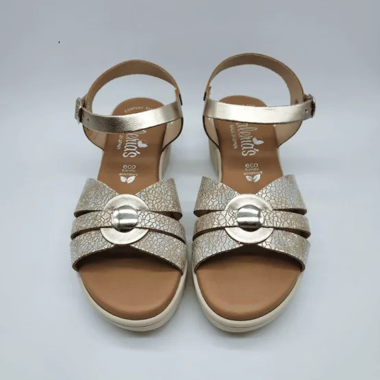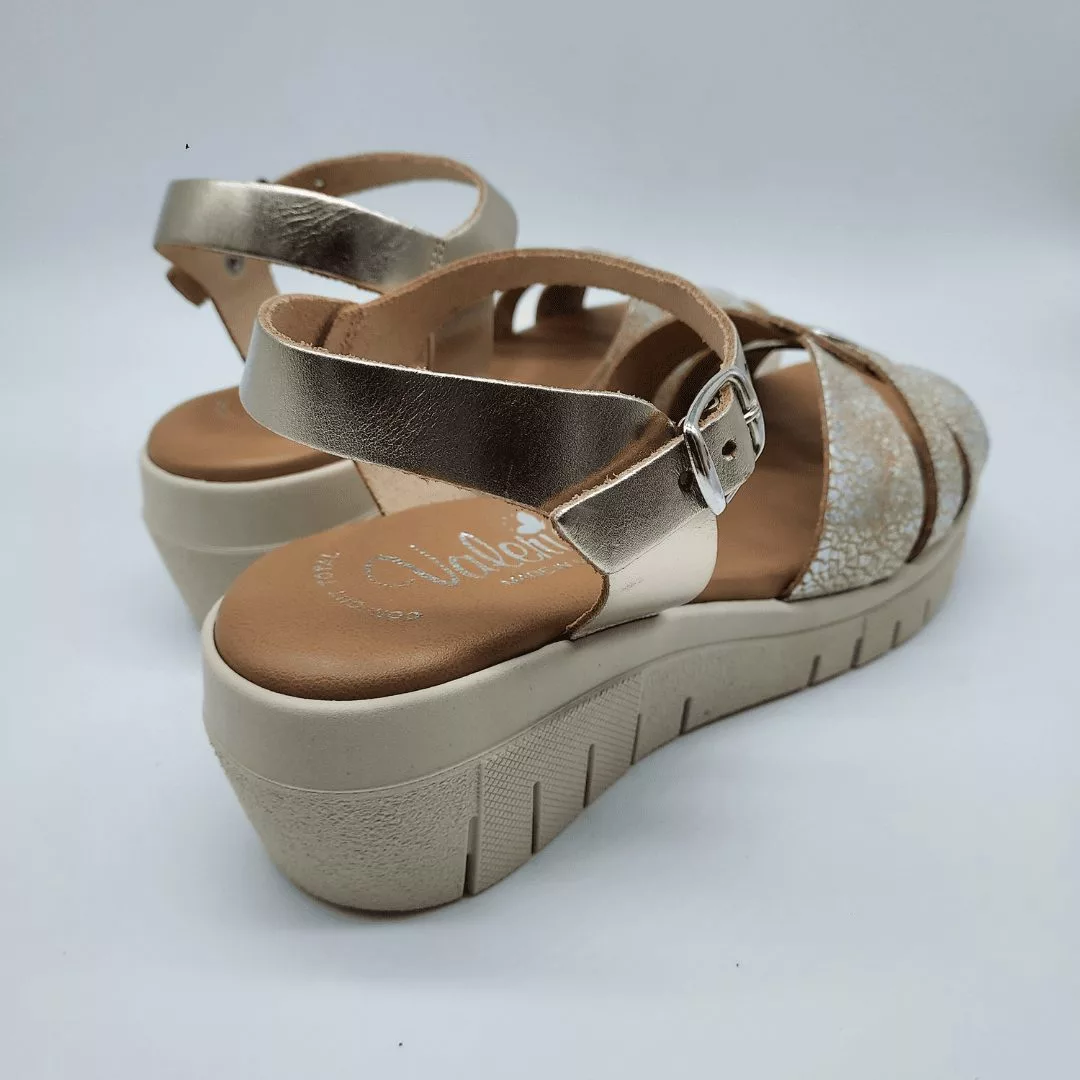 Valeria´s Mod. 2004, Sandalia en Piel acabado color Taupe, Cuña de 4,5 cm y Plataforma delantera de 1,5 cm, con Plantilla Confort Total Eco Friendly Absorbent, Suela Antideslizante, con Cierre mediante Hebilla, Hecha en España.
