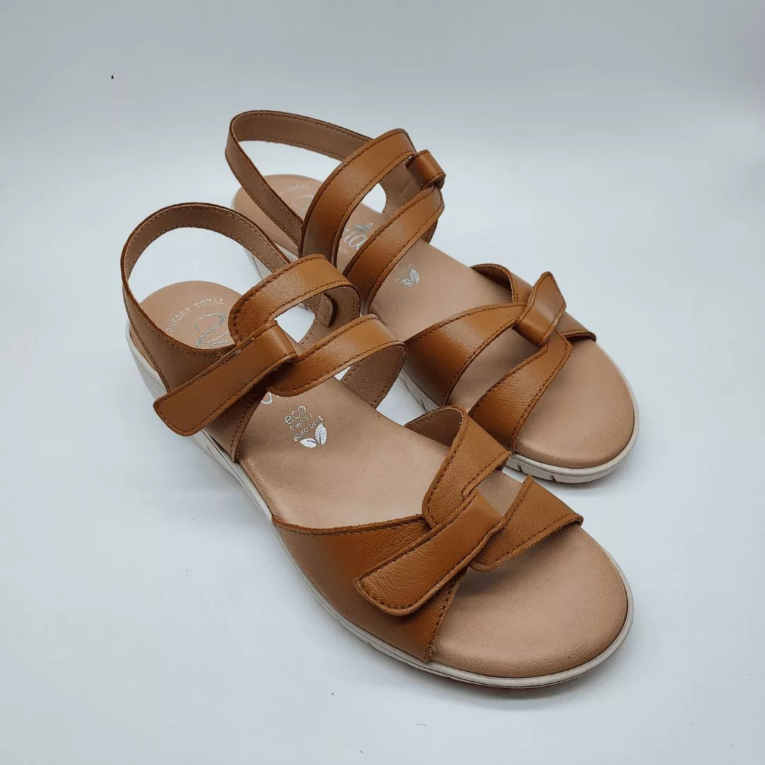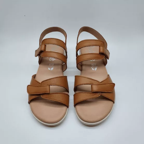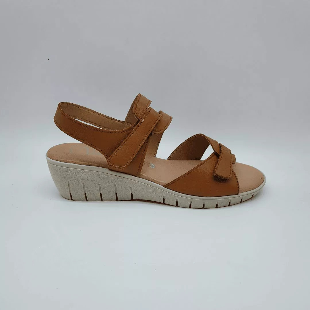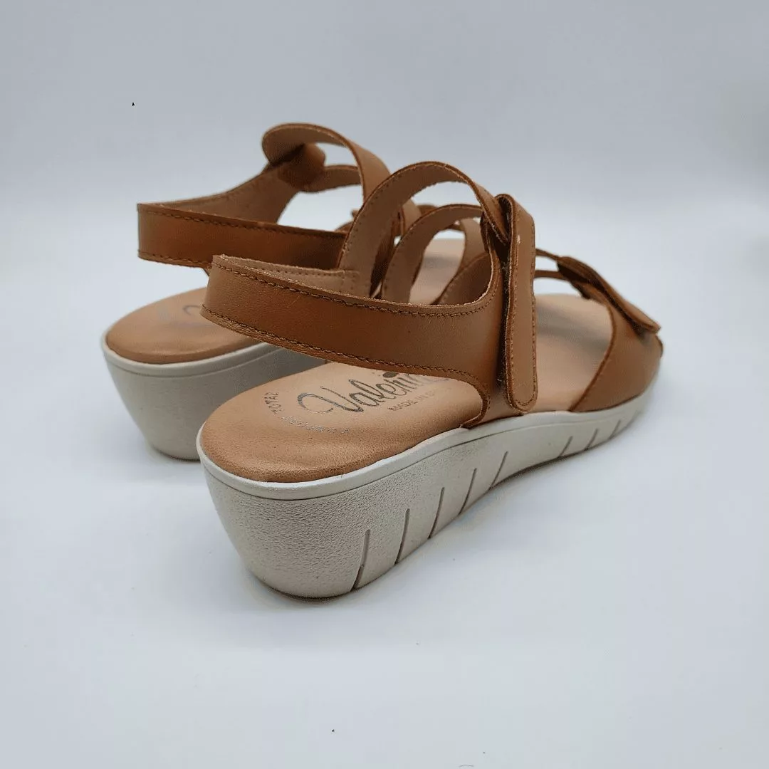 Valeria´s Mod. 2010, Sandalia en Piel acabado color Cuero, Cuña de 4,5 cm y Plataforma delantera de 1 cm, con Plantilla Confort Total Eco Friendly Absorbent, Suela Antideslizante, con Cierre mediante Velcro (2), Hecha en España.