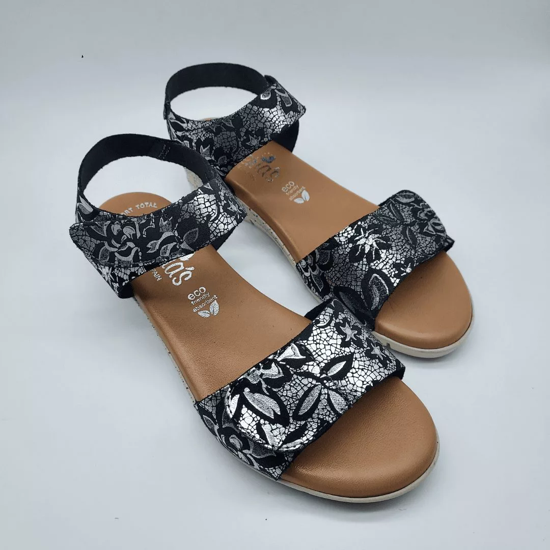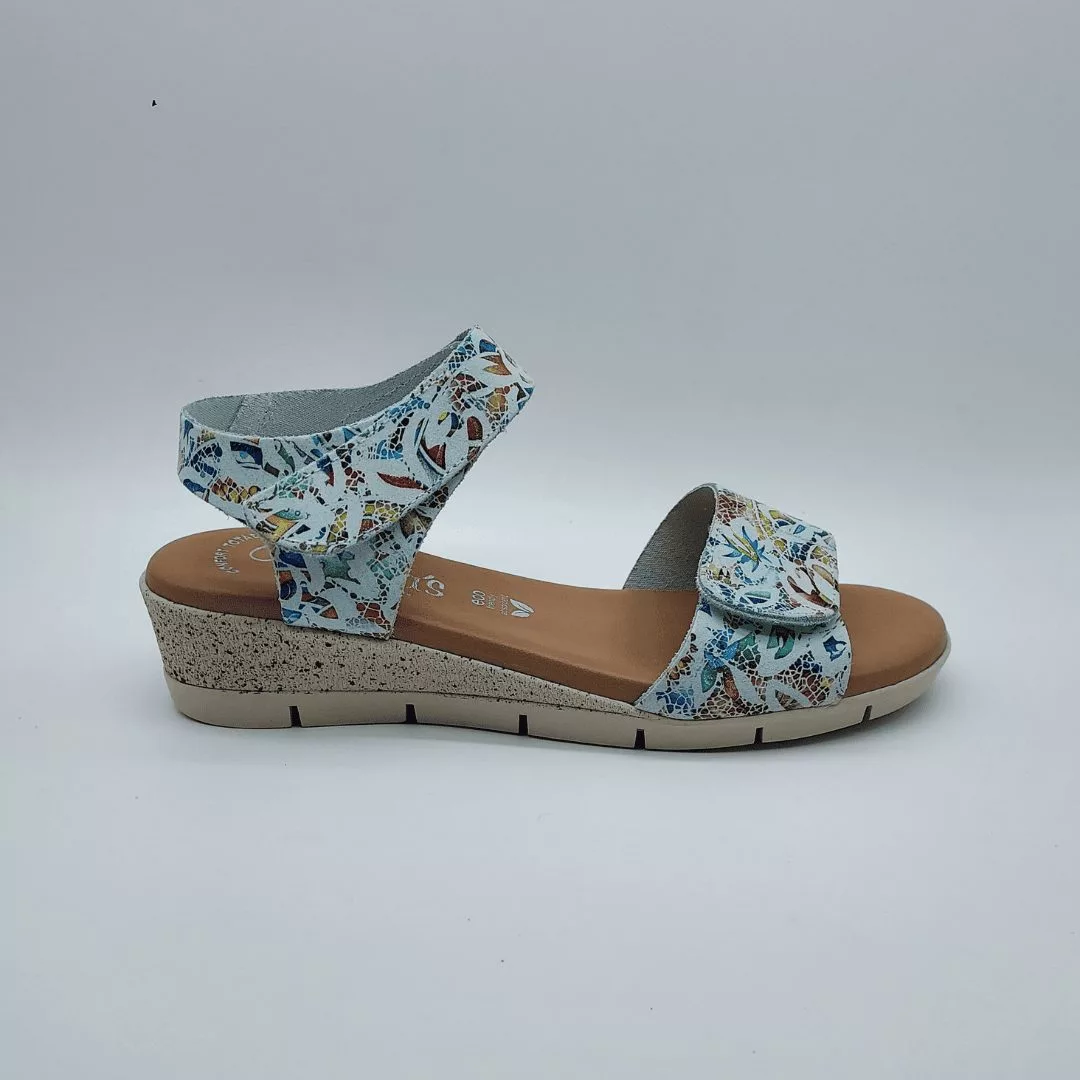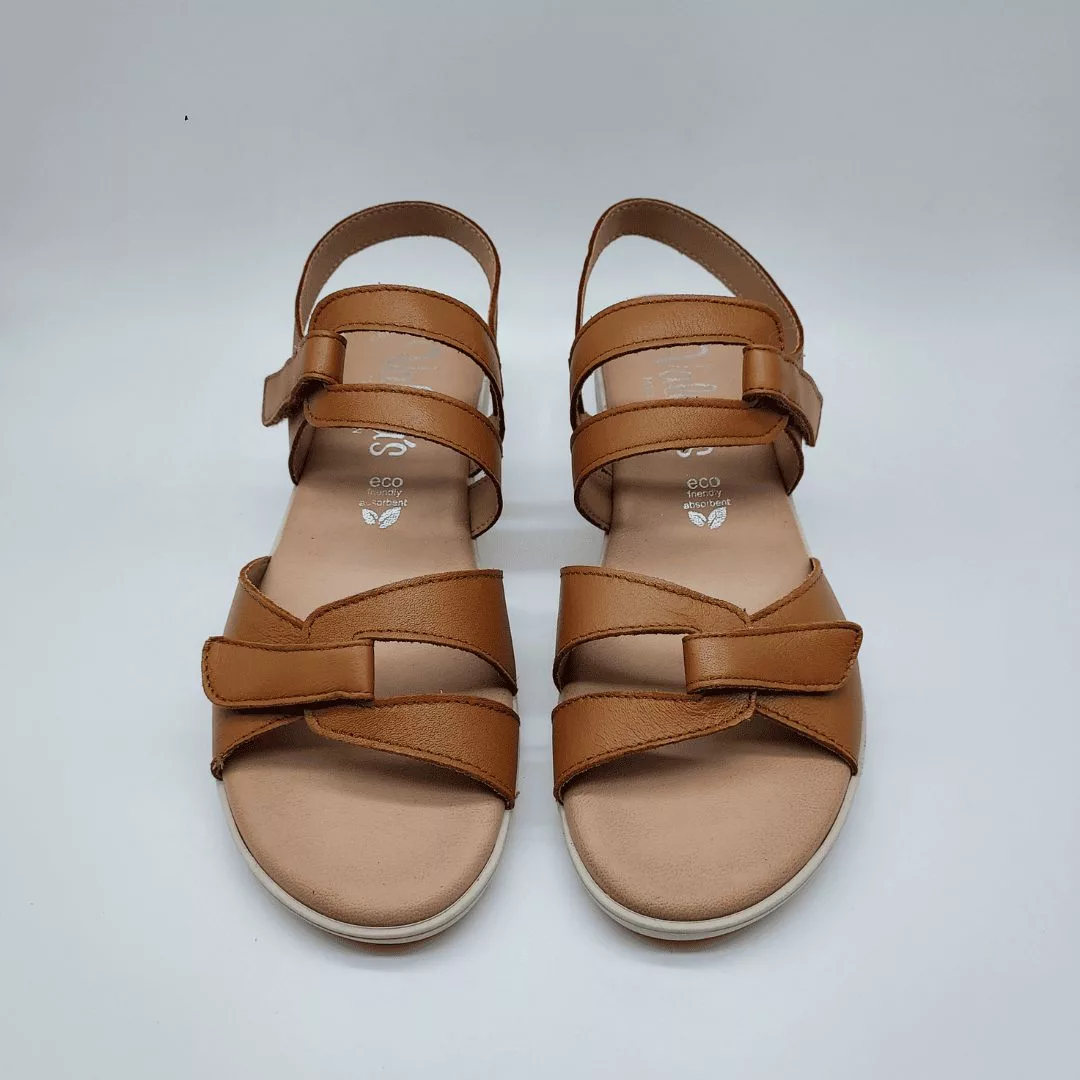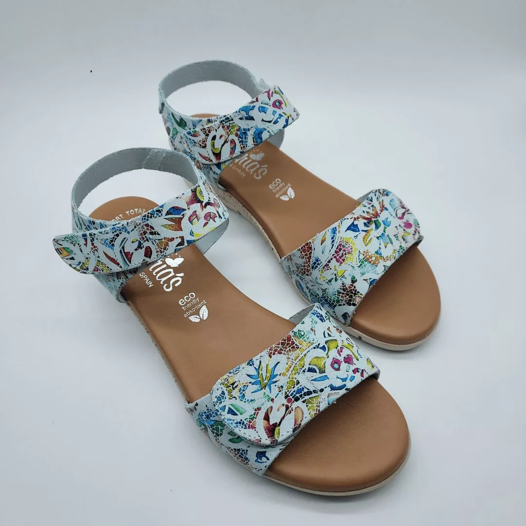 Valeria´s Mod. 2010, Sandalia en Piel acabado color Cuero, Cuña de 4,5 cm y Plataforma delantera de 1 cm, con Plantilla Confort Total Eco Friendly Absorbent, Suela Antideslizante, con Cierre mediante Velcro (2), Hecha en España.
