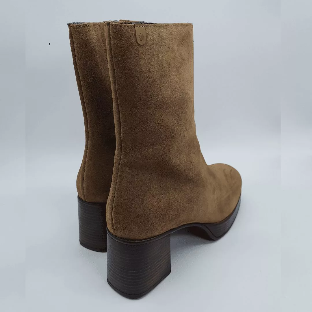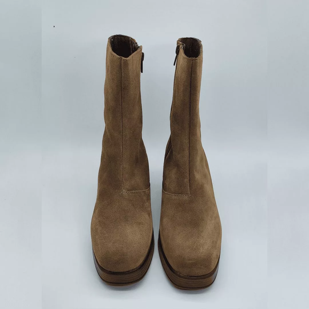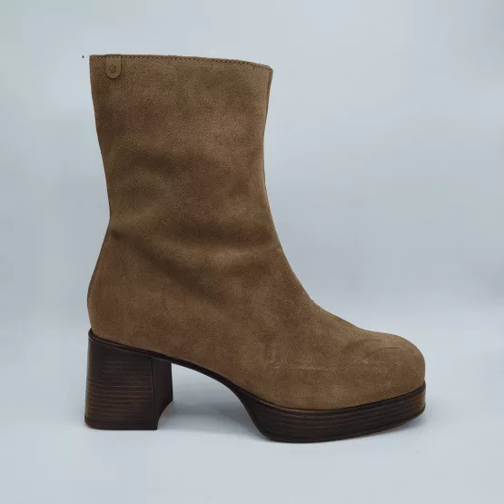 Valeria´s Mod. 2406, Bota de Media Caña en Piel Serraje acabado color Taupe. Tacón Grueso de 6 cm. y Plataforma Delantera de 1,5 cm, con Forro Textil Interior y Plantilla Acolchada Extraible. Cierre mediante Cremallera Lateral. Hecha en España.