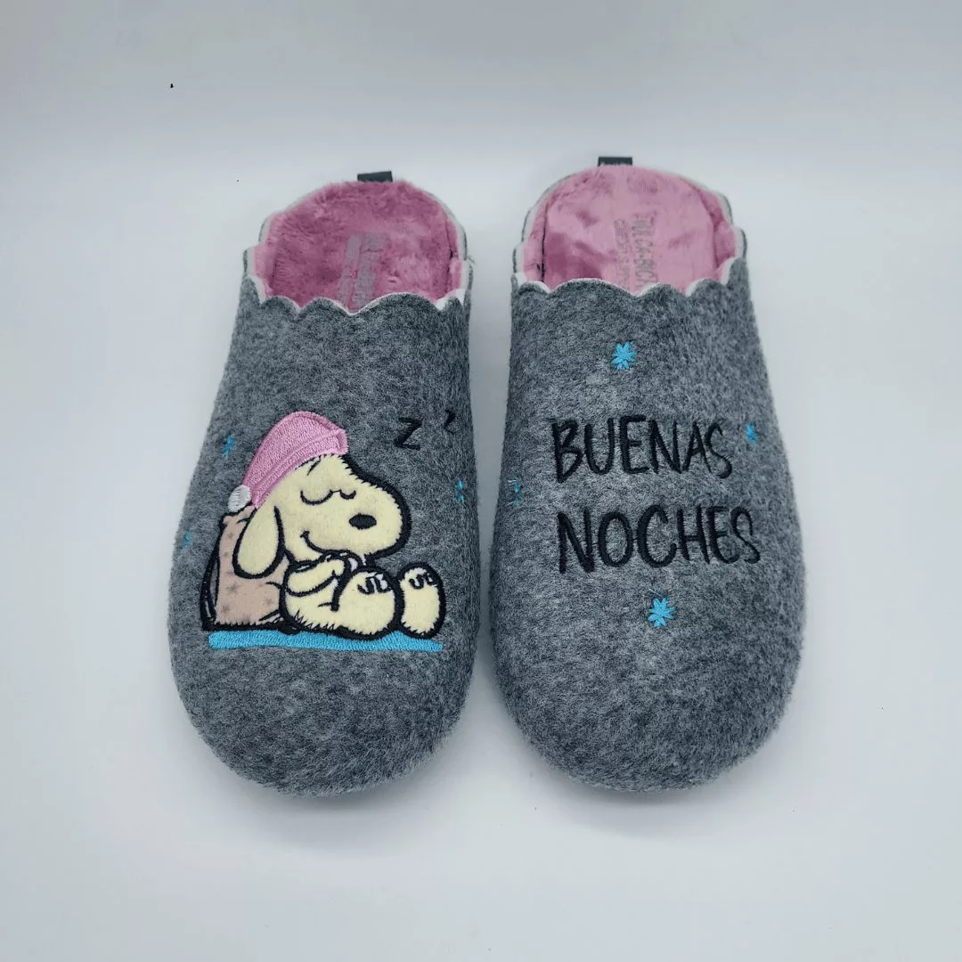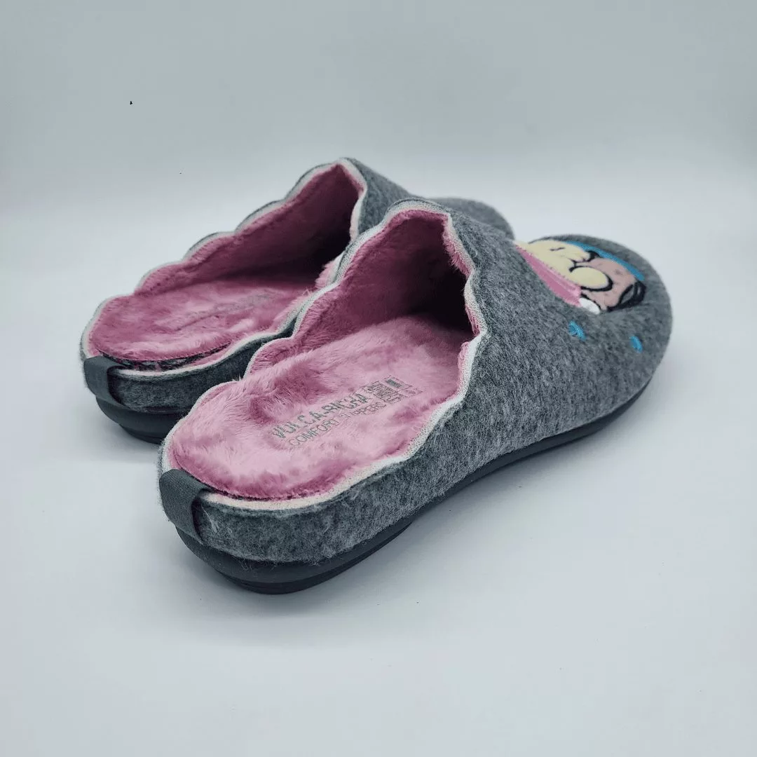 Vulca-Bicha Mod. 1387, Zapatilla Plana de Invierno para Mujer, confeccionada en Tejido Fieltro acabado Gris/Malva, con Plantilla Acolchada Extraible. Suela de Caucho Natural. Hecha en España.