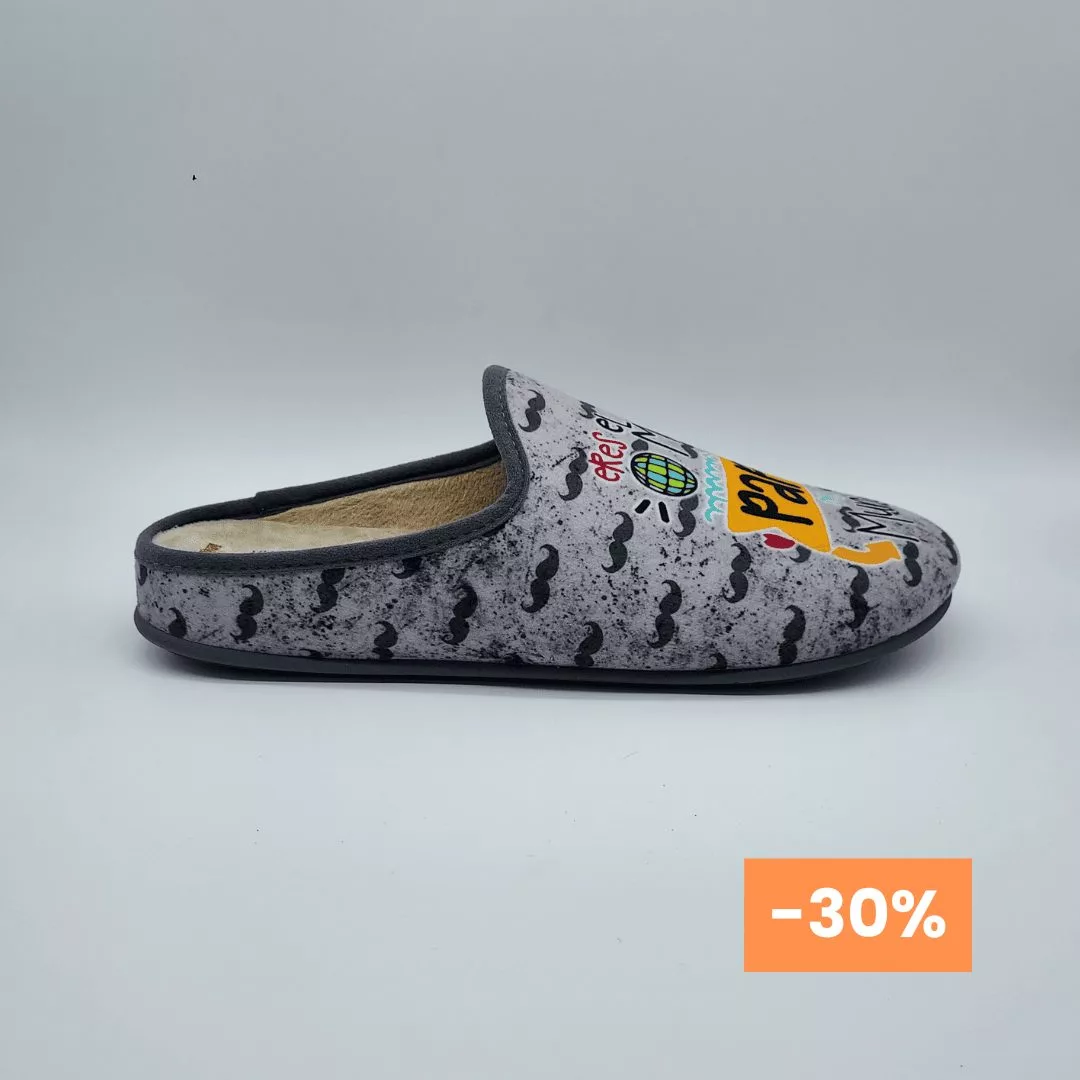 Vulca-Bicha Mod. 1819, Zapatilla Plana de Invierno para Hombre, confeccionada en Tejido Estampado acabado Grenoble Gris, con Plantilla Acolchada Extraible. Suela de Caucho. Hecha en España.