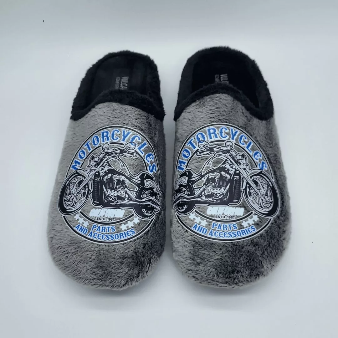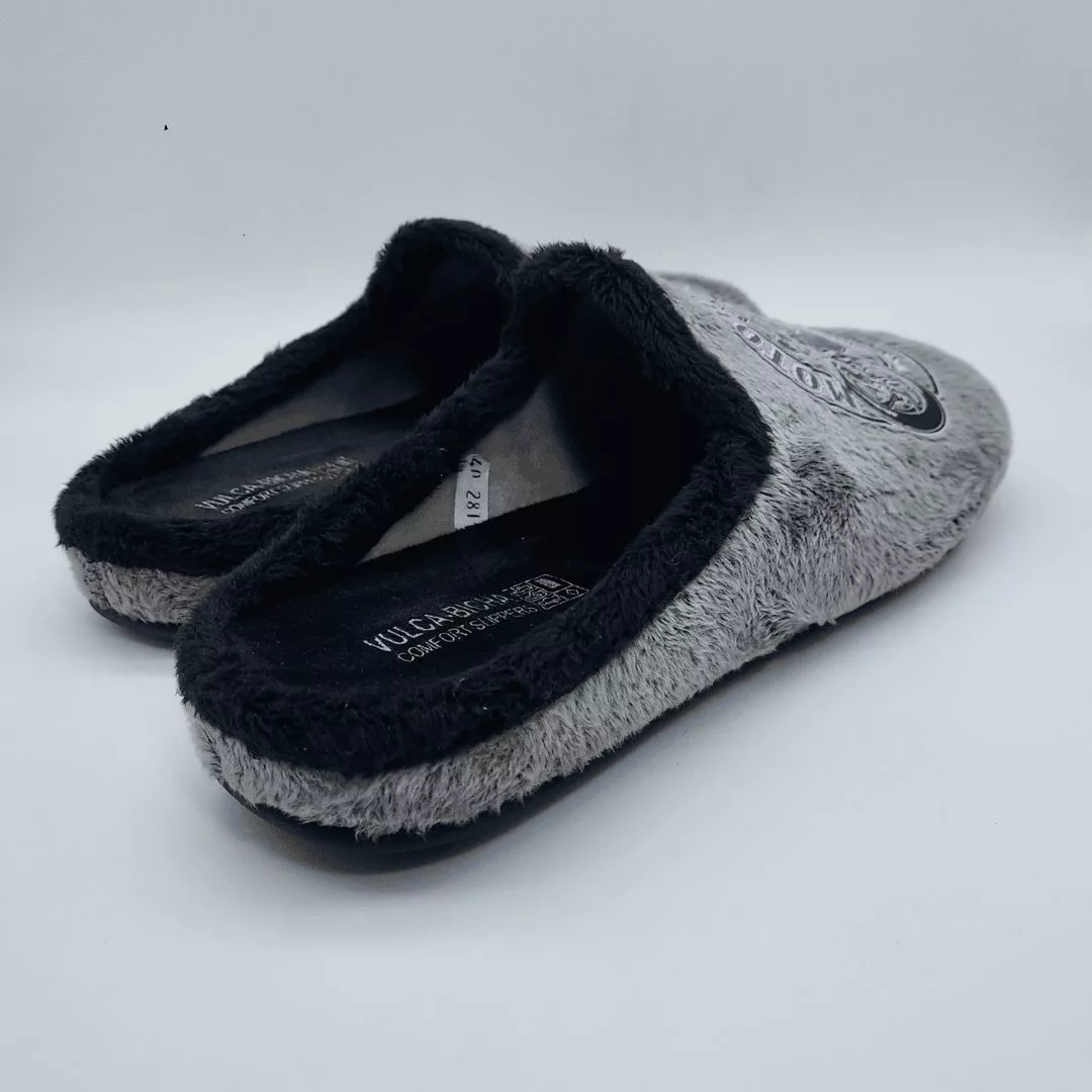 Vulca-Bicha Mod. 2811, Zapatilla Plana de Invierno para Hombre, confeccionada en Tejido Estampado acabado Iceber Gris/Negro, con Plantilla Acolchada Extraible. Suela de Caucho Natural. Hecha en España.
